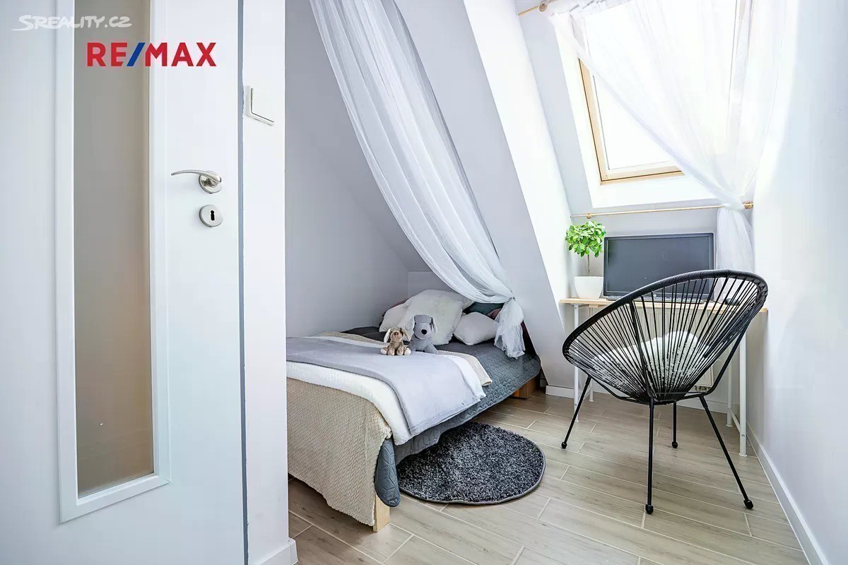 V centru Unhoště exkluzivně nabízíme k prodeji světlý, útulný podkrovní byt 2+kk s menší místností (s vlastním oknem) a prostornou terasou. Podlahová plocha bytu činí cca 61 m² a k tomu terasa o velikosti 41 m², která skýtá příjemný výhled na klidnou jižní část města plnou zeleně. Parkování je zajištěno v uzavřeném společném dvoře. Dispozici bytu tvoří obývací pokoj s kuchyňským a jídelním koutem, ložnice, koupelna s vanou a WC, vstupní chodba a samostatná místnost, kterou lze využít například jako šatnu, pracovnu nebo pokoj pro hosty. Díky střešním oknům a jihovýchodní orientaci je byt světlý s příjemnou vzdušnou atmosférou. Z obývacího pokoje je přímý vstup na terasu, kde najdete dostatek prostoru pro posezení s přáteli, letní grilování, vybudování kontejnerové zahrady nebo kombinaci toho všeho. Kuchyňská linka je vybavena vestavěnou myčkou, elektrickou troubou a sklokeramickou deskou. V ložnici a chodbě jsou úložné prostory, v obývacím pokoji pak stylové posezení. Podlahy jsou z keramická dlažby. Vytápění a ohřev vody zajišťuje vlastní plynový kotel. Rozvody elektřiny v mědi a vody v plastu jsou nově vyměněny. Unhošť je menší město s kompletní občanskou vybaveností. V docházkové vzdálenosti se nachází školy, školky, lékařské služby, lékárna, pošta, obchody, supermarkety, restaurace i sportoviště. Autobusové nádraží je vzdálené zhruba 70 metrů od domu a umožňuje rychlé spojení na metro Zličín, kam se dostanete za cca 15 minut. Stejná dojezdová doba platí i pro Letiště Václava Havla. Nemovitost je ideální pro jednotlivce, pár nebo menší rodinu, která hledá pohodlné a klidné bydlení s výbornou dostupností do Prahy. Skvěle poslouží také jako investiční příležitost pro následný pronájem. Byt je připraven k okamžitému nastěhování a jeho koupi je možné hradit hypotéčním úvěrem, s jehož zajištěním vám můžou pomoci naši zkušení hypotéční speciálisté. V případě zájmu o více informací mě neváhejte kontaktovat. Těším se na viděnou na prohlídce.