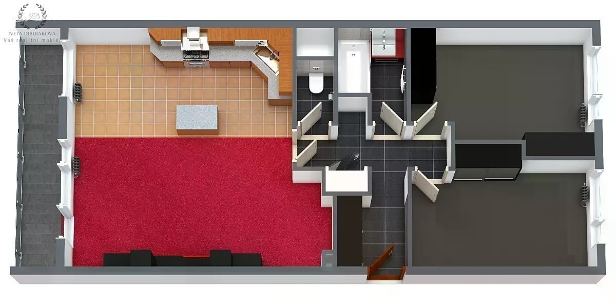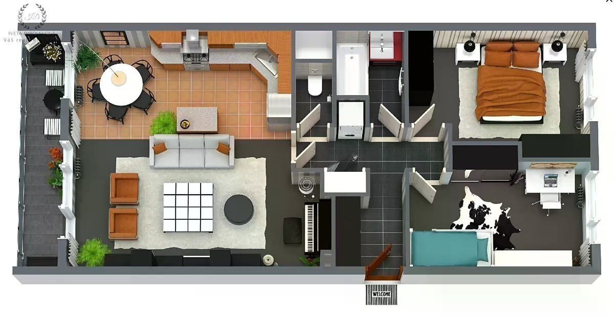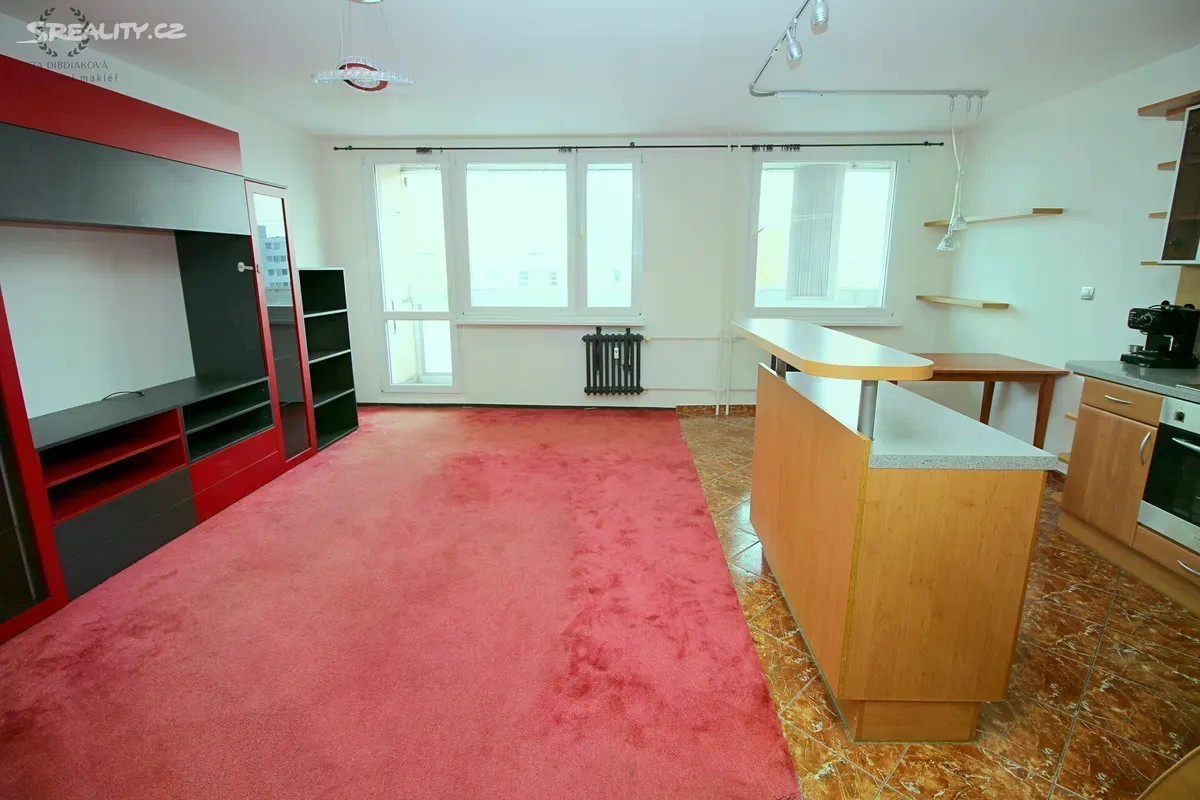 Nabízím k pronájmu zajímavě řešený byt 3+kk s lodžií a sklepem na ul. Veronské náměstí. Byt se nachází v sedmém nadzemním podlaží z osmi. Byt byl původně řešený jako 3+1 s tím, že byl architektem zajímavě předělaný na 3+kk. Dům je orientovaný s jižní a severní orientaci s tím, že prostorný obývací prostor s kuchyní je orientovaný na jih a ložnice s pokojem je orientovaná okny na sever s pěknými výhledy. Byt je částečně vybavený a to: Kuchyňská část je zařízená: kuchyňskou linkou s plynovou varní deskou a elektrickou troubou s digestoří, která je napojená na centrální odtah, myčkou a jídelním stolem. Lednice s mrazákem je na dohodě mezi zájemcem a vlastníkem. Může být dodaná. Obývací část je zařízená: Obývací stěnou s led podsvíceným a psacím stolem. Předsíň je zařízená: Vstupními bezpečnostními dveřmi, vestavěnou šatní skříní, přípojkami na pračku, a malou komorou s úložným prostorem a přípojkou na internet. Koupelna s toaletou jsou oddělené. Ložnice je zařízená: Dvěma vestavěnými skříněmi, komodou a přípravou na TV. S ložnice je pěkný výhled na okolí Horních Měcholup a Prahu. Pokoj je zařízený: Vestavěnou šatní skříní, dětskou poschodovou postelí a poličkami s úložným prostorem na hračky. V bytě aktuálně žila 5 členná rodinná domácnost a kompletní poplatky s elektřinou a plynem vycházejí dle předpisu SVJ 4.800,-Kč/měsíc + elektřina 1.930,-Kč/měsíc + plyn 260,-Kč/měsíc. Parkování může být jak před domem nebo s možností jsi pronajmout parkovací stání od Městský částí Prahy 15 hned vedle domu za cenu od 1 400,-Kč/měsíc. V oblasti Horních Měcholup nejsou modré zóny a tak lze parkovat v okolí. V okolí domu se nachází Hostivařský lesopark, hřiště, školky, školy, zdravotná zařízení, obchody a služby. Byt vřele doporučuji, protože je dobře strategicky umístěn, mezi centrem Prahy a klidnou krajní částí Prahy s dobrou dostupnosti jak na MHD tak na dálnicí D1. Ideální pro rodinu.