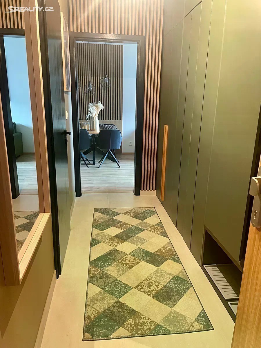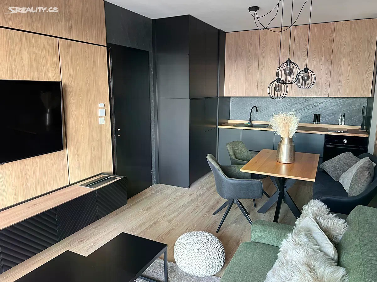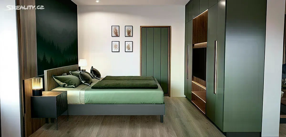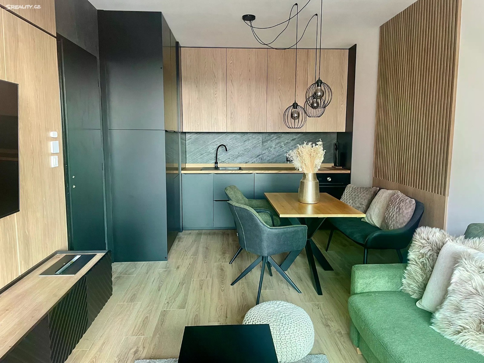 Nabízíme ke koupi VIP stylový horský apartmán na sjezdovce lyžařského areálu Plešivec. Atraktivní lokalita u sportovního areálu, v blízkosti zábavného dětského centra. Dispozice apartmánu je 2+kk o velikosti 40 m², s balkonem 3,67m2, sklepní kójí a venkovním parkovacím stáním. Apartmán je součástí nově vystavěného a architektonicky zajímavého domu s názvem "Residence Krušec", který se nachází v klidné části obce Abertamy, v srdci Krušných hor. Apartmánový dům spadá do energetické třídy B (tepelná čerpadla, podlahové topení, chytrá domácnost), a byl navržen tak, aby spojoval komfort moderního bydlení s příjemnou atmosférou horského prostředí. Celý apartmán byl navržen s veškerým komfortem, včetně velkého množství úložných prostor a v originálním designu s maximem využití přírodních materiálů, barev a ve vysoké kvalitě. Dispozice apartmánu tvoří ložnice s dvoulůžkem, dvěma nočními stolky a velkou vestavnou skříní s bohatým úložným prostorem i možností zavěšení televize. Obývací pokoj je vybaven kvalitní rozkládací pohovkou určenou pro každodenní spaní, konferenčním stolkem se sedáky, obývací stěnou v dekoru dubu s televizí a designovou skříní se zabudovaným elektrickým krbem. Kuchyňský kout s jídelním stolem je plně vybavený - k dispozici je vestavná myčka nádobí, vestavná kombinovaná mikrovlnná a horkovzdušná trouba, vestavná lednice s mrazákem, indukční varná deska, kávovar a rychlovarná konvice s plnohodnotně vybaveným kuchyňským inventářem včetně přípravy na kombinovanou pračku se sušičkou. Samozřejmostí je vlastní koupelna se sprchovým koutem ve stejném designu jako obývací pokoj. Součástí apartmánu je také balkon s překrásným výhledem do přírodní krajiny centrálních Krušných hor, kde je umístěno stylové posezení ideální pro ranní kávu nebo večerní odpočinek. K dispozici je rovněž vysokorychlostní internet. Součástí apartmánu je také venkovní parkovací stání u objektu a samostatná uzamykatelná sklepní kóje, která je ideální pro uskladnění lyžařského vybavení anebo kol. Sklepní kóje zároveň disponuje samostatnou el. zásuvkou pro připojení vysoušečů lyžařských bot anebo pro nabíjení elektrokola. Měsíční náklady na zálohy bez elektřiny a internetu činí příznivých 3.500,- Kč. Apartmán se prodává plně vybavený, vhodný ihned k užívání. Díky své poloze a vybavení je vhodný jak pro vlastní rekreaci, tak i jako investiční příležitost s možností krátkodobého pronájmu. V případě zájmu jsme schopni doporučit i vhodnou společnost zajišťující správu a provoz krátkodobých pronájmů. Pro více informací či osobní prohlídku nás neváhejte kontaktovat, jsme přímí majitelé. RK NEVOLAT, DĚKUJEME.