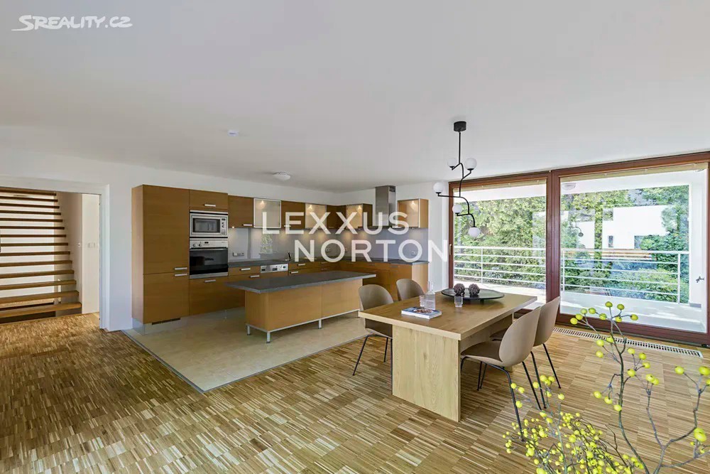 Nadstandardní, nezařízená vila 7+1 k prodeji (452 m2) se 4 terasami, zahradou, saunou a garáží v poklidné lokalitě Prahy 6 - Břevnova. Lokalita disponuje veškerou občanskou vybaveností a především rodiny s dětmi ocení nedaleké mateřské školy, základní i mezinárodní školy. Na atraktivitě lokalita získává rovněž díky blízkosti parku Ladronka a dobrým spojením na letiště. Luxusní, nezařízená, vila 7+1 k prodeji (452 m2) nabízí svým rezidentům k užívání v přízemí prostornou vstupní halu, reprezentativní obývací pokoj s krbem, vstupem na 2 terasy a udržovanou zahradu a s kvalitní vybavenou kuchyní (sporák, trouba, lednice, mrazák, myčka nádobí, mikrovlnná trouba). Přízemí je dále tvořeno ložnicí se vstupem na zahradu a koupelnou. V prvním patře se nachází prostorná galerie, hlavní ložnice s koupelnou, šatnou a terasou, druhá ložnice s vlastní koupelnou a šatnou, další 3 ložnice a koupelna. Druhé patro vily je tvořeno ložnicí/pracovnou a velice prostornou střešní terasou s panoramatickým výhledem na Prahu. Vila dále disponuje prádelnou, vinotékou a kotelnou. Interiér domu působí velice vzdušně a součástí vybavení jsou velkolepá okna, vestavěné skříně, pračka, sušička. Suterén domu je tvořen saunou a garáží a před domem se také nachází dvě venkovní parkovací stání. Nemovitost se nachází v klidné vilové čtvrti, na samém konci slepé ulice bez provozu - ideální pro ty, kdo hledají soukromí a tiché prostředí. Poklidná lokalita Břevnova disponuje dobrou dopravní infrastrukturou - bydlení se nachází blízko tramvajových i autobusových spojů. Kompletní občanská vybavenost je zaručena, včetně supermarketu Billa, lékáren aj. V blízkosti bydlení lze rovněž naleznout například park Ladronka. V místě se nachází dětská hřiště, mateřské a základní školy či nedaleké mezinárodní školy PBIS, Riverside School a International School of Prague. Z místa je dobré dopravní spojení na letiště. Nemovitost je vybavena bezpečnostním systémem, který je napojen na security službu. Výše zúčtovatelných měsíčních záloh činí 14 000 Kč. Nabízíme Vám videoprohlídku této nemovitosti z pohodlí Vašeho domova v reálném čase přes Messenger, WhatsApp a další komunikační platformy.
