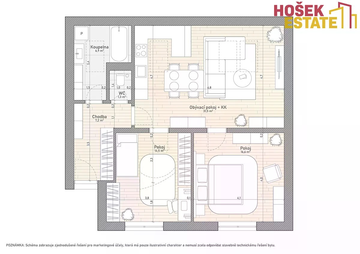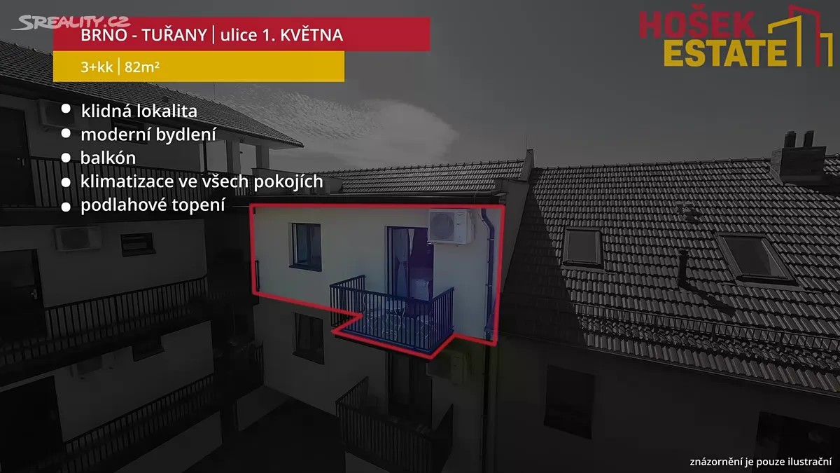 Hošek Estate Vám exkluzivně nabízí k prodeji nádherný byt o dispozici 3kk. Byt se nachází ve druhém patře bytového domu ve vyhledávané lokalitě Brno - Tuřany. Ideální volbou nejen pro rodiny s dětmi, které hledají příjemné bydlení. Byt je světlý a útulný, má příjemnou atmosféru, ve které se člověk cítí příjemně. V bytě je podlahové topení. Zajišťuje komfort po celý rok, klimatizace v každém pokoji zase oceníte hlavně v létě. Okna s trojskly a nově instalovanými fóliemi proti slunci pomáhají udržet v bytě klid a stabilní teplotu. Kuchyně je úplně nová - trouba i myčka zatím nebyly použité. Plynule navazuje na obývací a jídelní část, odkud je vstup na balkón o velikosti 3 m² orientovaný do vnitrobloku. V chodbě je vestavěná skříň, která poskytuje dostatek úložného prostoru. V okolí domu najdete parky, školy, hřiště, obchody i dobrou dopravní dostupnost do centra Brna. Možnost pronájmu parkovacího místa ve dvoře. Majitel si vyhrazuje právo vybrat zájemce na základě nejlepší nabídky. Pokud vás byt zaujal, ráda vás provedu osobně.