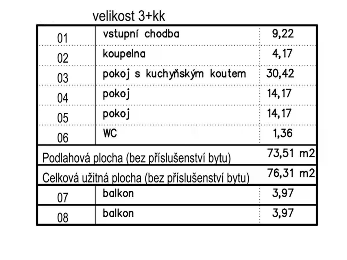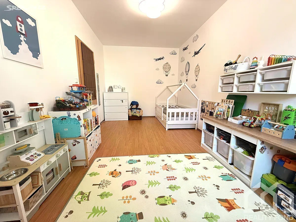 Na základě výhradního zastoupení majitele vám nabízíme krásný, světlý, prostorný a dobře dispozičně řešený byt v osobním vlastnictví o dispozici 3+kk, který se nachází ve 2. NP (1. patře) cihlového domu bez výtahu z roku 2012. Po vstupu do bytu se nachází prostorná vstupní hala (9,22 m2) s vestavěnou skříní a botníkem, ze které je vstup do všech místností vyjma ložnice. Dominantou bytu je velký a světlý obývací pokoj (30,42 m2) spojený s kuchyňským koutem a vstupem na balkon (3,97 m2). Kuchyňská linka je vybavena vestavěnými spotřebiči: myčka, trouba, indukce a digestoř. Z obývacího pokoje je vstup do ložnice (14,17 m2), ze které je umožněn přístup na druhý balkon (3,97 m2). V ložnici zůstává vestavěná zrcadlová šatní skříň. Z haly dále vstupujete do dětského pokoje (14,17 m2). Koupelna (4,17 m2) je vybavena vanou, toaleta (1,36 m2) je samostatná. Před domem jsou dvě parkovací stání vedle sebe (2 x 13 m2) v osobním vlastnictví a v přízemí domu je prostorná sklepní kóje. Jedná se o klidnou lokalitu vhodnou pro rodinu s dětmi, v areálu jsou dětská hřiště a v blízkosti populární přírodní koupaliště. V obci je kompletní občanská vybavenost: MŠ - 5 tříd, ZŠ, market se smíšeným zbožím, zdravotní středisko s lékárnou, obecní úřad, pošta, penzion s restaurací, cukrárna/bistro, nová knihovna, veterinář, Billa, drogerie DM, KFC, Super ZOO, tabák, populární rybník Mirešák - koupaliště. Vynikající dopravní dostupnost: bus 309, 310 - 9 min na metro Zličín, bus 352 - 18 min na metro Luka, 32 min Nemocnice Motol, bus 418 - 5 min na metro Stodůlky. Na vlakovou zastávku Jinočany dojdete pohodlně za 10 min a odtud jste na Smíchovském nádraží za dalších 20 min. Snadná dostupnost na letiště Václava Havla do 15 min. Nemovitost lze financovat hypotékou, kterou vám zařídíme. Vřele doporučuji tento byt v žádané a oblíbené lokalitě v obci s kompletní infrastrukturou. Byt je vhodný pro pohodové bydlení na dosah Prahy. Pro více informací a prohlídku kontaktujte RK.