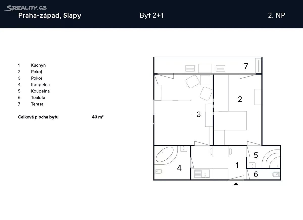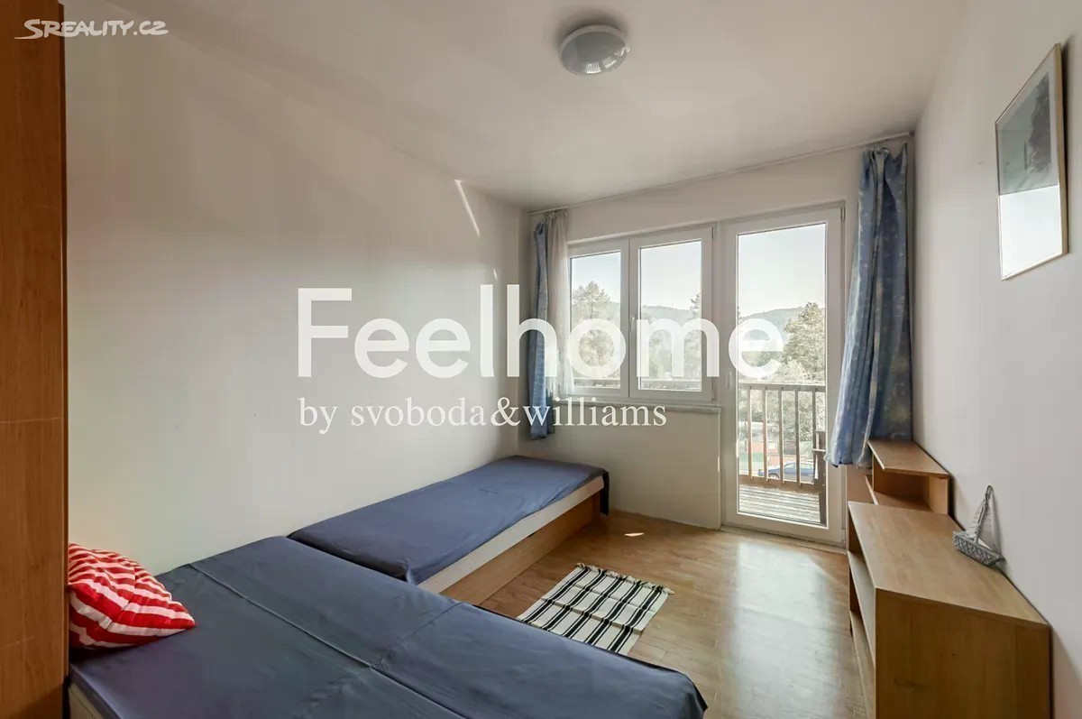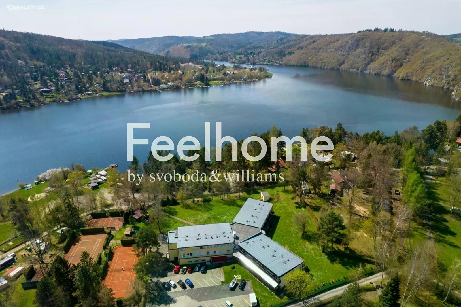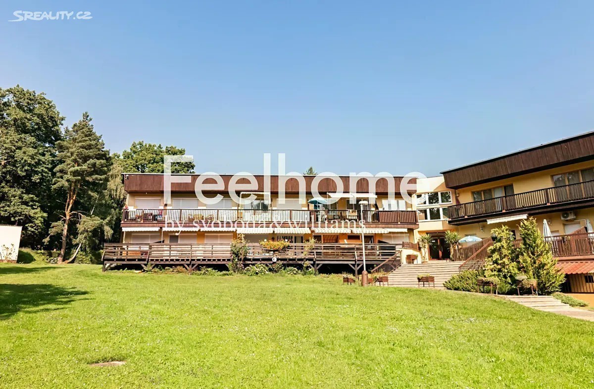 Prakticky řešený apartmán s terasou, dvěma koupelnami a parkováním v uzavřeném areálu kousek od přístaviště, pláže, tenisových kurtů i golfového hřiště v oblíbené lokalitě Ždáň na Slapech, cca 35 minut od Prahy. Jednotku ve 2. podlaží tvoří 2 neprůchozí pokoje, 2 koupelny, samostatná toaleta a chodba s kuchyňským koutem a jídelním prostorem. Prostorná terasa s posezením je přístupná z obou pokojů. Apartmán je jednoduše, ale účelně zařízen. Jedna z koupelen má rohovou vanu, toaletu, umyvadlo a dostatek místa na pračku (přípojka), druhá je se sprchovým koutem, umyvadlem a oddělenou toaletou. Kuchyňka je vybavena kuchyňskou linkou s lednicí, dvouplotýnkovým vařičem a digestoří. Vybavení zahrnuje plastová okna s dvojsklem, na podlaze je linoleum a dlažba. Ohřev vody je zajištěn dvěma bojlery, vytápění mobilními elektrickými přímotopy. K bytu přísluší jedno venkovní parkovací stání. V areálu lze využívat novou saunu se sprchou, fitness, společenskou místnost s krbem, místo pro grilování a je zde dostatek travnatých ploch pro děti. Správce areálu se stará o zahradu, opravy i úklid, takže se můžete jen rekreovat. Areál bývalého rekreačního střediska SURF se nachází jen pár kroků od písečné pláže a přístaviště, odkud je možné dostat se lodní linkou do Měřína a na Živohošť, kde jsou další oblíbené pláže, dětská hřiště, restaurace a aquapark. Můžete také vyrazit po turistických stezkách do krásné krajiny přírodního parku Střed Čech, 2 minuty autem trvá cesta od apartmánu k 18jamkovému golfovému hřišti Golf Park Slapy. Apartmán poskytuje nejen klidné zázemí pro vlastní rekreaci, ale vzhledem k blízkosti Prahy, je také skvělou investicí. Apartmán vznikl spojením dvou jednotek, v prohlášení vlastníka vedeno jako ubytovací jednotky. Podlahová plocha 33,6 m2 (16,6 m2 + 17 m2), terasa 8,8 m2 (4,4 m2 + 4,4 m2).