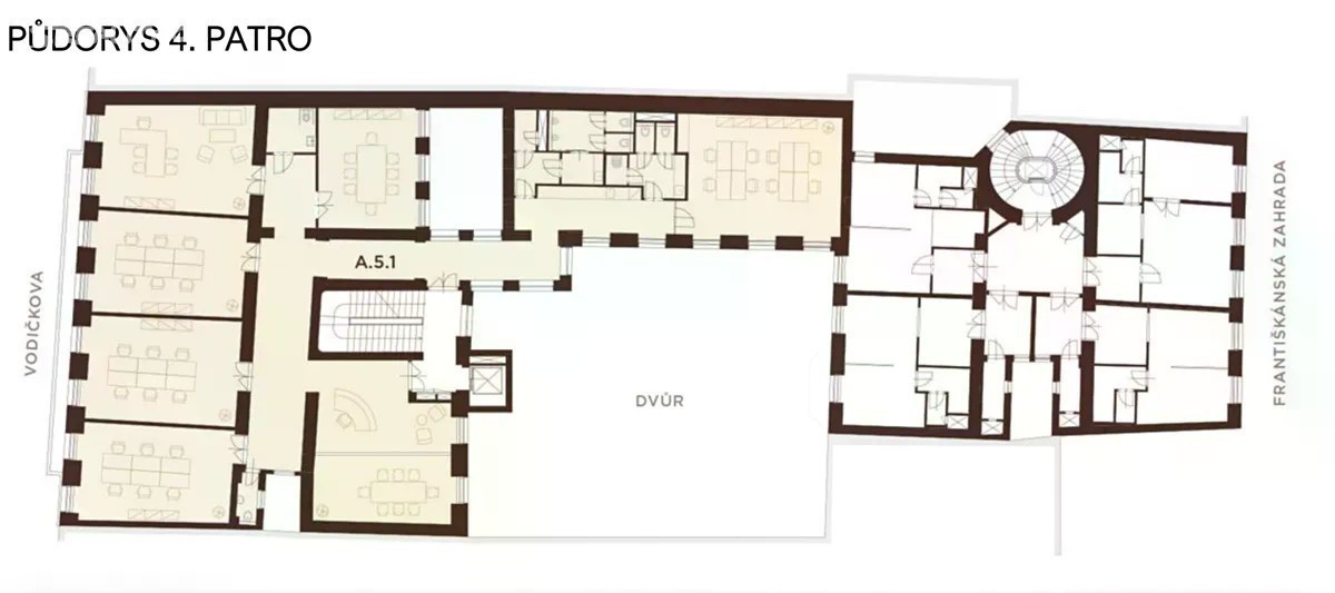 *Neplatíte provizi* Dovolujeme si vám nabídnout reprezentativní kancelářské prostory o velikosti 405 m2 v budově Vodičkova 33 na Praze 1. Jednotka umístěna ve 3.NP je dispozičně rozdělena na 5 samostatných kanceláří pro 4 - 6 osob, dvě zasedací místnosti a recepci. K dispozici je také vlastní sociální zázemí a kuchyňka. Budova Vodičkova 33, původně známá jako Vítkův dům, nabízí po kompletní rekonstrukci 3 500 m2 reprezentativních kancelářských a komerčních ploch. Kombinací moderního technologického zázemí a historického charismatu budovy i jejích interiérů vzniká jedinečný prostor pro perspektivní podnikání v jedné z nejlukrativnějších pražských ulic. Všechna podlaží poskytují dělené uspořádání kanceláří i možnost otevřeného prostoru. Veškeré jednotky počítají se zázemím v podobě WC, toalet, kuchyněk a serverovny. Kanceláře v historické části objektu (1.- 6. patře) jsou přizpůsobeny původní nosné konstrukci budovy, avšak nenosné příčky lze zcela nebo částečně odstranit, čímž vznikne atraktivní a inspirující kancelář s novou dimenzí prostoru. Budova nabízí prémiové komerční prostory s širokými možnostmi využití. Díky svému vysokému standardu dokončení a velkorysým prostorům může být budova ideálním řešením pro firemní klientelu i pro notářské či advokátní kanceláře, hledající prestižní adresu uprostřed centra Prahy. Prestižní adresa Vodičkova 33 leží přímo v srdci centra města, pár kroků od Václavského náměstí v historickém centru Prahy, nedaleko od všech významných památek, obchodních a administrativních centra v sousedství Františkánské zahrady. Jedná se o prémiovou lokalitu s vynikající dopravní dostupnost (tři trasy metra, několik tramvajových linek, významná vlaková nádraží). V pěší dostupnosti naleznete široký výběr restaurací, obchodů a hotelů s konferenčním zázemím nebo další služby, jako například banky, pošty, lékařské domy, lékárny a jiné. Objekt nabízí i další jednotky. V této lokalitě Vám můžeme nabídnout i další komerční prostory - nechte si bezplatně zpracovat nabídku aktuálně dostupných prostor dle Vašeho zadání nebo navštivte naše webové stránky.