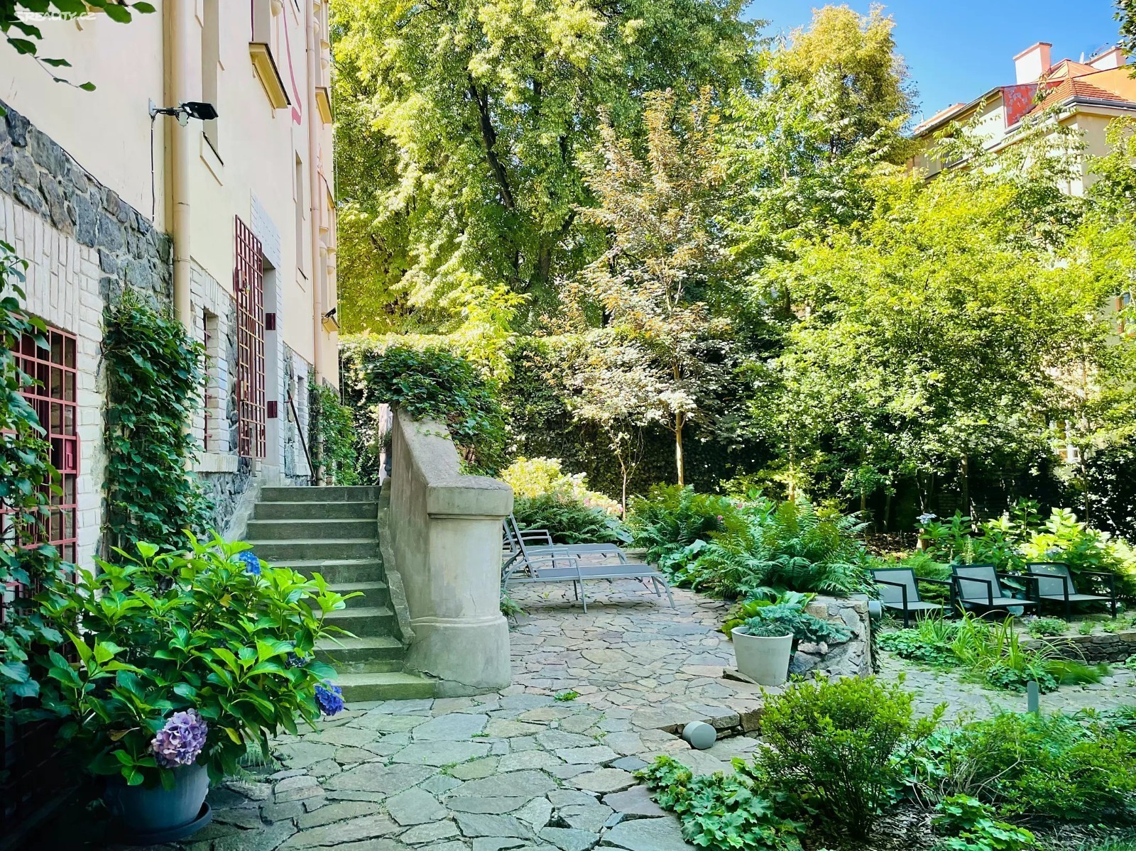 Prodej renovované historické secesní vily o 5NP s krásnou zahradou, Praha 5 Malvazinky Vila stojí na čtvercovém půdorysu. Stojí v prudkém svahu, který se zvedá ze severovýchodu na jihozápad. Jedná se o pětipodlažní budovu. Vstup do vily je z ulice ve východní části po schodech pod terasu, která je vynášena mohutnými sloupy. V první patře se tak nachází prostorná terasa s výhledem na centrum Prahy. Na druhé straně pak vile vévodí věžička zastřešená pyramidální dřevěnou střechou s přesahem, inspiprovaná orientem. Jedinečná stavba s duší. Po kompletní rekonstrukci dle stavebních a restaurátorských standardů. Všechny původní secesní fasádní prvky byly zachovány. Penthousový mezonetový byt se smyslem pro detail a pracovnou s kulatými okny se střešní galerií s výhledem na město. Ozvučení bytů s vestavěnými reproduktory. Výtah (se vstupem přímo do bytů v 1. a 2. NP) 3 balkony (19 m² se nepočítá do užitné plochy) Garáž (19 m² se nezapočítává do užitné plochy) Klidná velkorysá zahrada s posezením a jezírkem. Plocha pozemku cca 685 m² Užitná plocha cca 528 m² 5 bytových jednotek cca 495 m² 2 skladové jednotky cca 33 m² 1 garáž. Dispozice: První suterénní patro: cca 95 m² - rozděleno na tři místnosti s exkluzivní koupelnou a prádelnou. Z ulice je přímý vstup do skladu (využívaného jako garáž), který má celkem 19,5 m². První nadzemní podlaží (přízemí) cca 158 m², z toho 27 m² je určeno pro schodiště a hlavní vstup. Apartmán a sdílený pokoj s koupelnami. Druhé nadzemní podlaží (1. patro) cca 143 m², z toho 16 m² terasa - dělená místnost a kancelář/byt s kuchyňkou a koupelnou. Třetí nadzemní podlaží (2. patro) cca 145 m². Byt (kancelář) plus věž. Ve věži je menší garsoniéra cca 11 m². Je třeba vzít v úvahu mezanin, který má užitnou plochu přibližně 35 m². Výška stropů je následující: Technické místnosti 2,07 m, podlaží suterénu 3,11 m, zábavní místnost 4,90 m. Přízemí 3,28 m. První patro 3,20m. Druhé patro podkroví 3,14 m. Mezipatro 3,26 m. Vila je vhodná jak na bydlení, tak na sídlo firmy. Více informací rádi poskytneme na vyžádání.