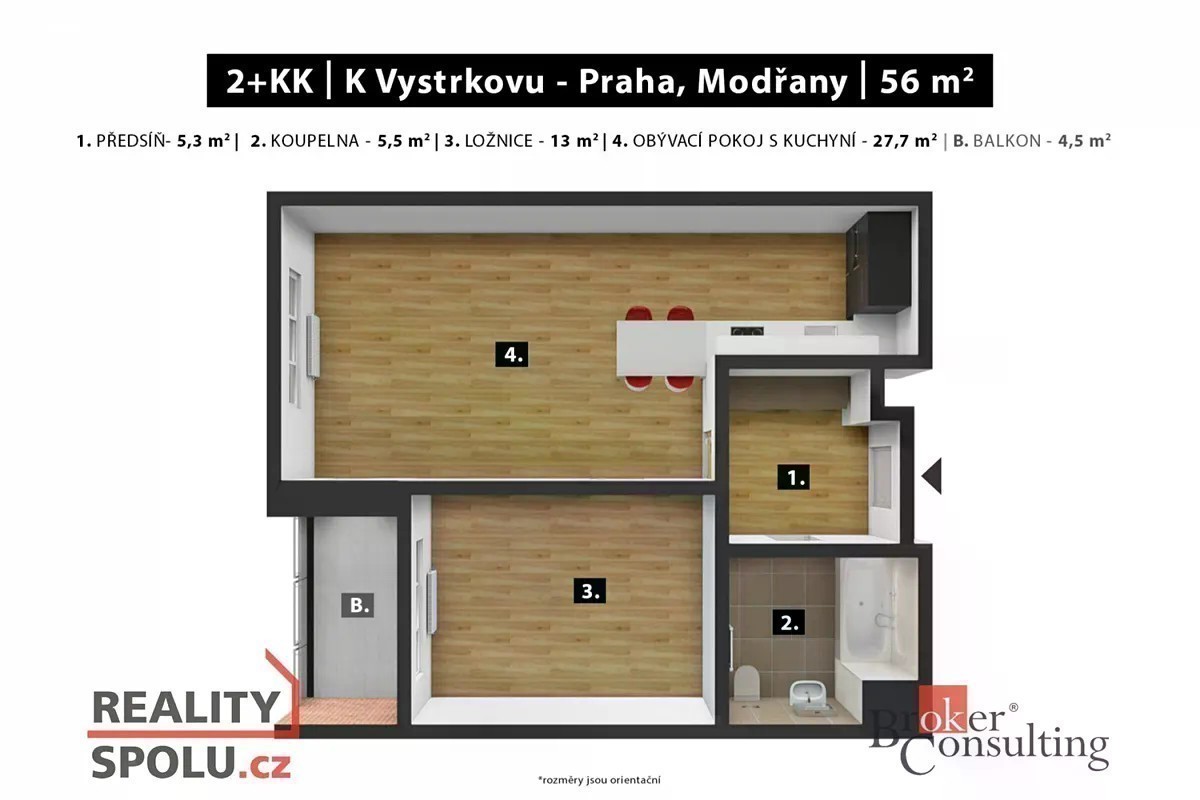 Prodej bytu 2+kk 56 m² K Vystrkovu, Praha - Modřany