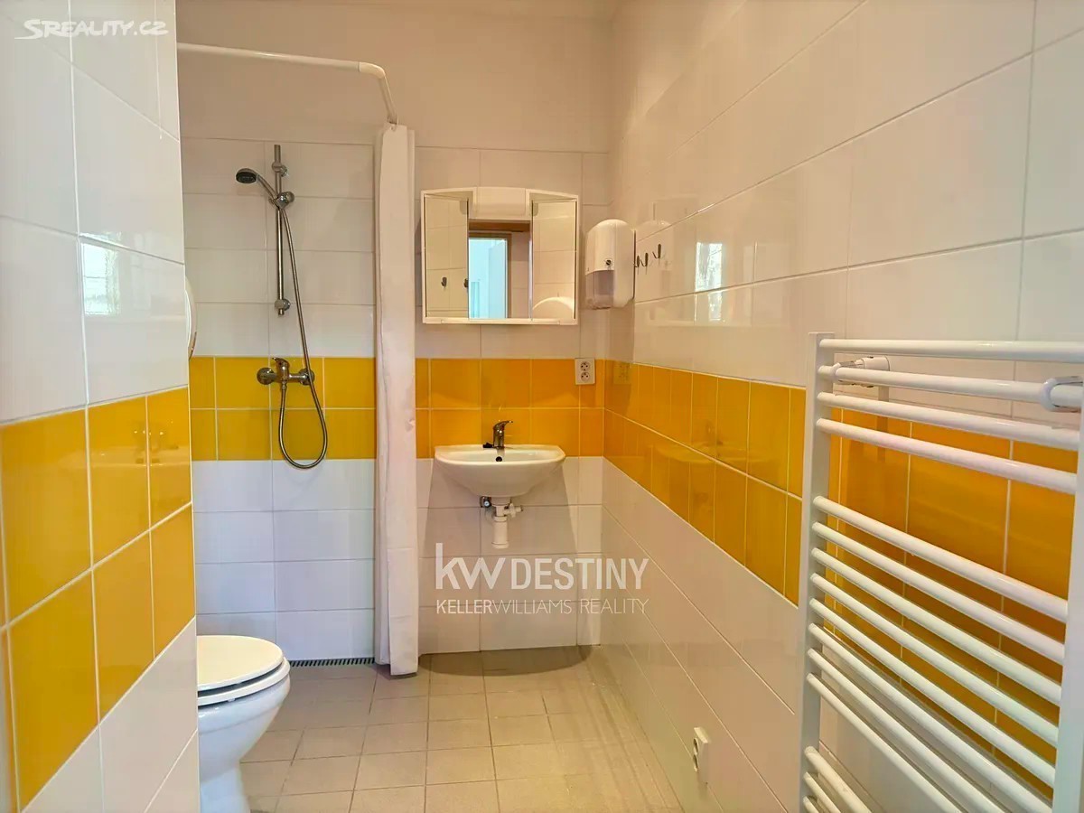 Ve výhradním zastoupení Vám nabízím k pronájmu byt v osobním vlastnictví o dispozici 2+1, který se nachází ve 3. patře (4. NP) bytového domu. Byt je určen výhradně pro osoby starší 50 let nebo osoby s invaliditou 3. stupně, které jsou soběstačné. Byt prošel částečnou rekonstrukcí a má zděnou koupelnu. Z hlavní chodby je vstup do ložnice, obývacího pokoje a koupelny s WC. Do kuchyně se vstupuje přes obývací pokoj. Součástí vybavení je kuchyňská linka s digestoří a elektrickým sporákem. V obytných místnostech je na podlaze PVC, v koupelně s WC dlažba. V domě je k dispozici také služba praní prádla. Součástí nájmu je možnost zdarma využívat společenské prostory domu, mezi které patří např. relaxační zahrada, počítačová místnost či jídelna, která je průchozí celým domem. V domě není poskytována pečovatelská služba. Výhodou bytu je blízkost centra města a skvělá dostupnost občanské vybavenosti. Náklady na bydlení: nájemné: 6 300 Kč / měs. zálohy (voda, teplo, elektřina): 4 200 Kč / měs. celkem: 10 500 Kč / měs. kauce: 12 600 Kč (vratná) provize: 7 650 Kč (jednorázová) Pokud vás byt zaujal a splňuje vaše požadavky, neváhejte mě kontaktovat pro více informací a domluvu termínu prohlídky.
