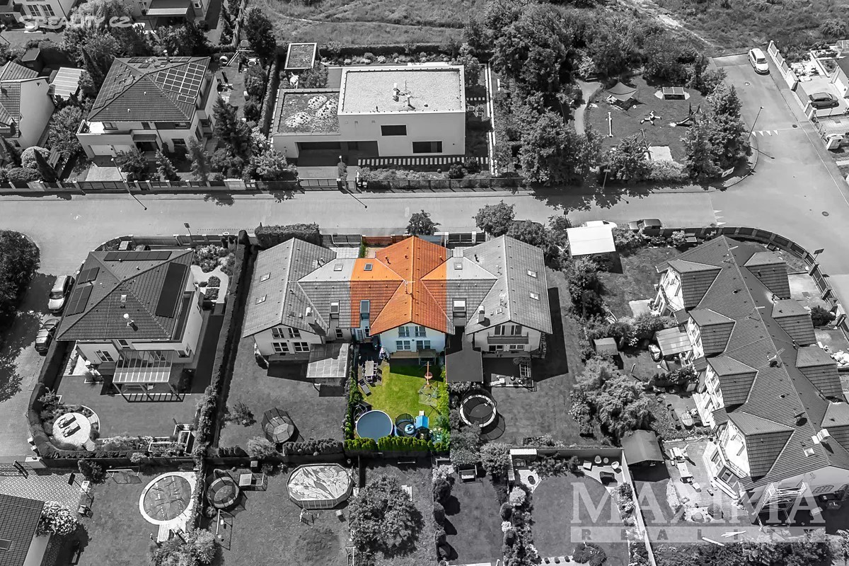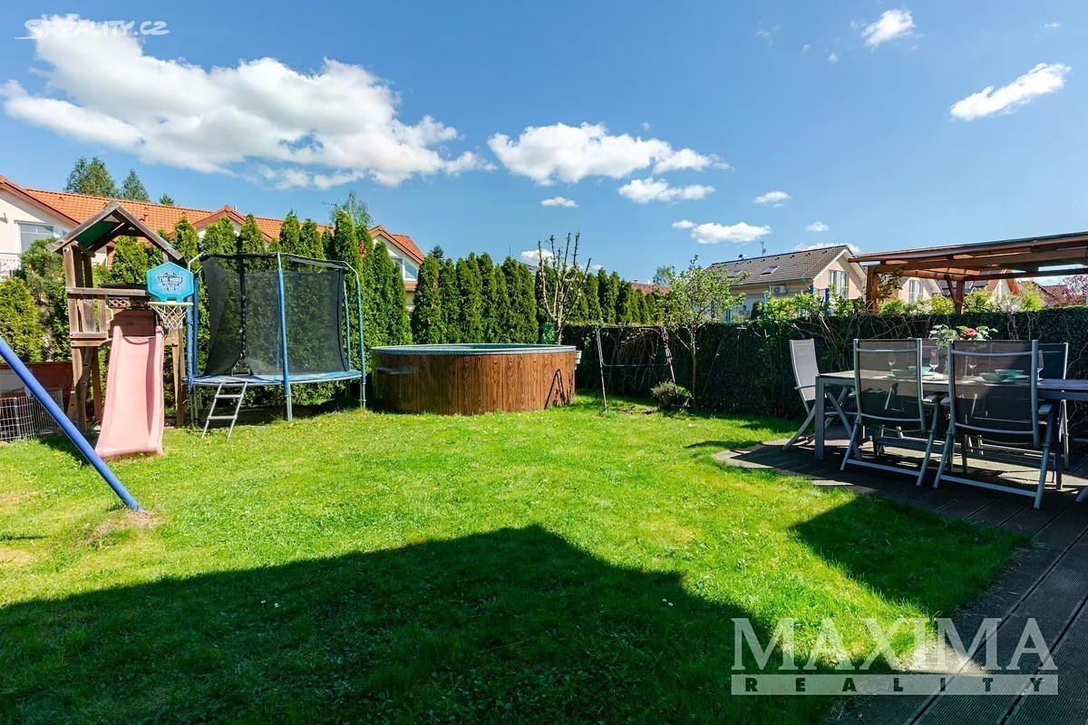 Exkluzivní nabídka moderního rodinného domu 5 + kk s garáží v klidné rezidenční části Prahy 9 Újezd nad Lesy. Dvoupodlažní řadovka z roku 2009 je situována na rovinném prosluněném pozemku o rozloze 284 m2 a nabízí užitnou plochu 142 m2 + úložný prostor na půdě. Přízemí tvoří prostorný obývací pokoj s kuchyní a vstupem do zahrady s bazénem, dále je zde samostatná toaleta, předsíň a komora. V prvním patře jsou 4 samostatné ložnice, ve kterých vám příjemnou teplotu v letním období zajistí klimatizace, dále je zde velká koupelna s podlahovým topením. Ve všech ložnicích jsou krásné vestavěné skříně, další úložný prostor je pak na půdě. Na oknech v přízemí jsou instalovány elektricky ovládané venkovní žaluzie, vstupní dveře jsou bezpečnostní, v domě je také zabezpečovací systém od spol. Jablotron s možností připojení na dispečink, všechna okna jsou doplněna o bezpečnostní folie. Nábytek v přízemí je součástí ceny. Rychlý internet je zajištěn společností Interconnect, pro zajištění stability jsou vnitřní rozvody internetu řešeny kabelem. Součástí domu je prostorná garáž pro jedno auto a jedno venkovní stání na pozemku. V přední části zahrady se nachází praktický zahradní domek, ve kterém snadno uložíte kola, či nářadí. Vytápění a ohřev vody zajišťuje tepelné čerpadlo. Dům je napojen na obecní vodovod a kanalizaci. Jedná se o atraktivní rezidenční lokalitu v blízkosti zeleně s velmi dobrou dostupností do centra. Zastávka autobusu je kousek od domu, v dobrém dosahu je také vlakové spojení. V okolí je kompletní občanská vybavenost: školky, školy, dětská hřiště a sportoviště, obchody, restaurace apod. Nemovitost je možné financovat hypotečním úvěrem, s jehož vyřízením vám rádi pomůžeme. Ukazatel energetické náročnosti: D
