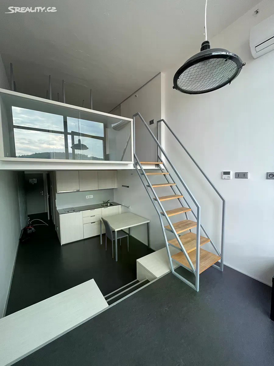 Nabízím k pronájmu moderní loft 2+kk, který se nachází v sedmém patře cihlové budovy Max 32 a je ve velmi dobrém stavu. Reprezentuje ideální příležitost pro jednotlivce, studenty nebo páry, kteří hledají komfortní bydlení s příjemnou atmosférou a velmi dobrou dostupností centra. Byt má velmi dobře řešenou dispozici na ploše 40 m². Moderně zařízené prostory nabízejí útulné a pohodlné bydlení. Při vstupu je koupelna s wc, šatní skříně, následuje kuchyně a vyvýšené podium pro obývací část. Na 13m2 je vložené patro pro ložnici s pracovním koutem a šatní skříní. Byt je k dispozici k nastěhování od 1. října 2025. Měsíční nájemné činí 14 500 Kč včetně energií.