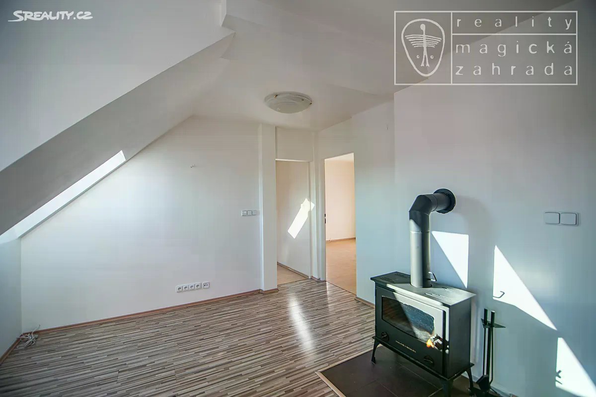 Prodej podkrovního bytu 3+kk, 70 m² - Dobříš Nabízím k prodeji útulný a světlý podkrovní byt o dispozici 3+kk a celkové výměře 70 m², který se nachází na 3. patře cihlového domu v klidné části Dobříše. Lokalita a dostupnost: Byt je ideální pro ty, kteří hledají bydlení s výborným spojením do Prahy i možností rychlého napojení na dálnici. Autobusová zastávka i vlakové nádraží se nachází pouhé 2 minuty chůze od domu. V okolí je kompletní občanská vybavenost - obchody, restaurace, kavárny, školy i sportovní zázemí. Milovníky přírody potěší blízkost CHKO Brdy či nedaleká vodní nádrž Slapy. Dispozice a vybavení: Byt prošel v roce 2010 rozsáhlejší rekonstrukcí (rozvody elektřiny, vody, změna dispozice na 3+kk). Součástí je: • prostorná ložnice, • menší pokoj (dětský pokoj nebo pracovna) s posuvnými dveřmi, • obývací pokoj propojený s kuchyní vybavenou moderními spotřebiči (lednice, myčka, indukční deska, trouba), • dvě koupelny - jedna s vanou, druhá se sprchovým koutem, • technická místnost. V obývacím prostoru jsou navíc krbová kamna, která podtrhují útulnou atmosféru bytu. Vytápění zajišťují elektrické přímotopy. K dispozici je parkování za domem. Další výhody: • klidné bydlení s dostatkem soukromí, • možnost využití bytu i jako investice, v Dobříši je omezená nabídka nájemních bytů a kvalitní byty jsou rychle obsazené • financování hypotečním úvěrem, s jehož vyřízením Vám rádi pomůžeme. Pokud Vás tato nabídka zaujala, neváhejte mě kontaktovat. Rád Vám poskytnu bližší informace a domluvíme si osobní prohlídku.