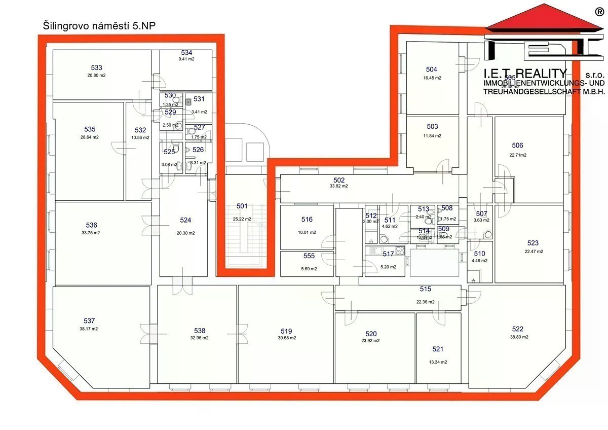 K pronájmu nabízíme kancelářské prostory v 5.NP objektu na Šilingrově náměstí, v historickém centru Brna. Budova poskytuje veškeré zázemí potřebné pro komfortní provoz. K dispozici je kuchyňka, výtah, klimatizace, bezbariérový přístup a recepce. V okolí se nachází kompletní občanská vybavenost - obchody, restaurace, kavárny i banky. Kancelář je vybavena toaletami a sprchami, které jsou samostatné pro muže a ženy. Možnost pronájmu parkovacího místa za 3 600 Kč měsíčně. Nájemné a poplatky jsou uvedeny bez DPH. Nájemce neplatí provizi.