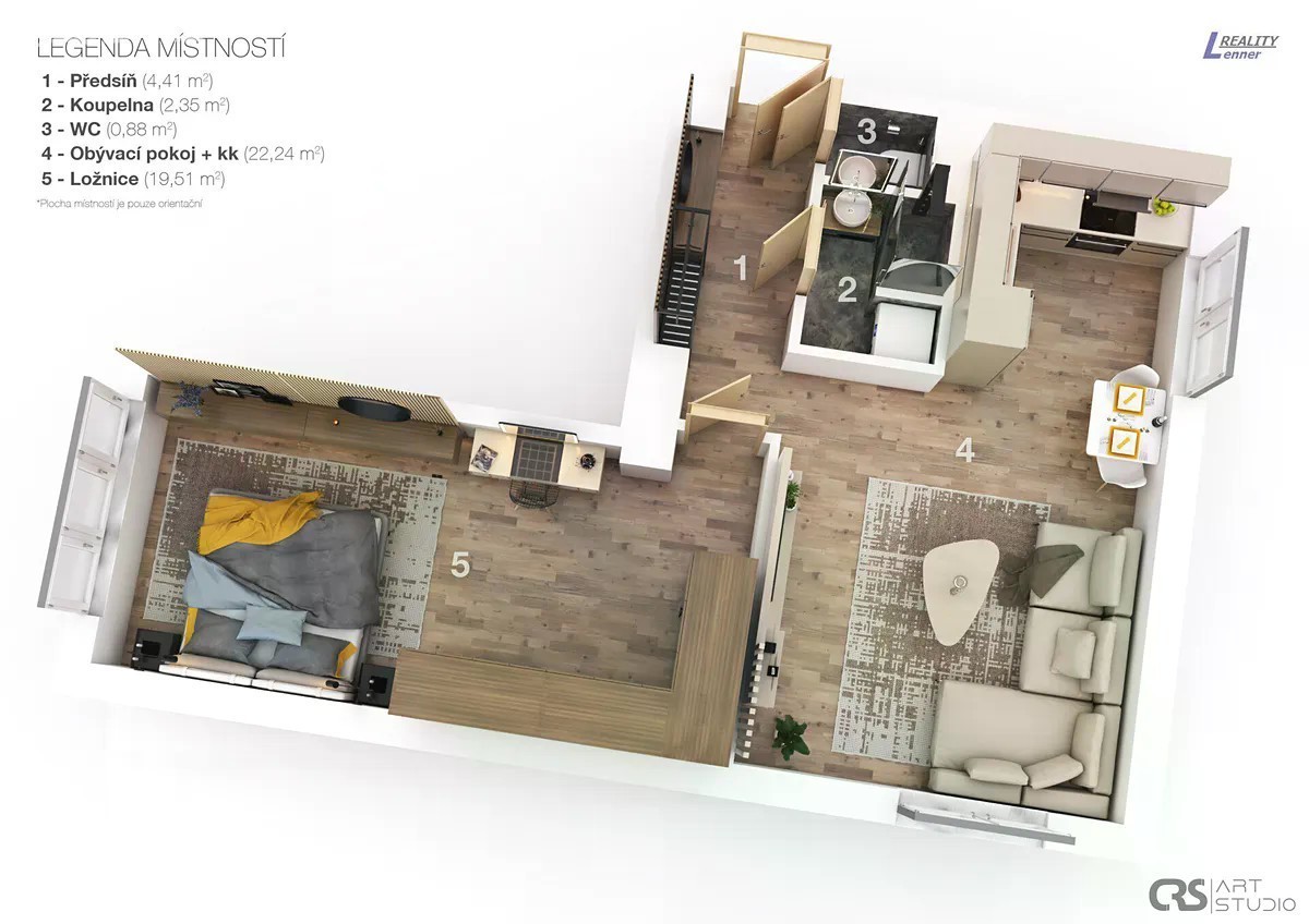 Nabízíme Vám krásný a prostorný byt po kompletní nákladné rekonstrukci dokončené v roce 2020, v klidné a velmi žádané lokalitě, v ulici 1. Máje v Hořovicích. Tento byt se nachází ve zvýšeném přízemí dvoupatrového cihlového domu bez výtahu, s výbornou obč. vybaveností v místě. Byt je po nákladné kompletní rekonstrukci. Celková plocha bytu je 54,49 m2 vč. sklepa, náležícího k bytu. Byt je ideální pro vlastní bydlení, případně jako vhodná investice na pronájem. Byt má k dispozici: předsíň, prostorný ob. pokoj s kuch. koutem 22,24 m2, ložnice 19,51 m2, koupelna se sprchovým koutem, samostatná toaleta s WC Geberit. V bytě po nákladné a velmi zdařilé rekonstrukci jsou: plastová okna vč. okenních rolet, kvalitní kuch. linka vč. spotřebičů (el. horkovzdušná trouba, mikrovlnná trouba, digestoř, myčka, indukční varná deska, vestavná kombinovaná chladnička s mrazákem), sádrokartonové podhledy, v bytě převážně úsporné LED osvětlení, podlahy v celém bytě velkoformátová luxusní dlažba, rozvody el. v mědi, novější jističe, zděné jádro, v koupelně a na WC luxusní designové obklady, voda a dopady v plastu, interiérové dveře vč. zárubní, vytápění zajišťují infrapanely, možnost internetu a kabelové TV. K bytu náleží vlastní sklep EPNB ve třídě D. Fond oprav se platí 1.766 Kč. Možnost parkovaní před domem, občanská vybavenost v místě. V případě zájmu Vám rádi vyřídíme hyp. úvěr.