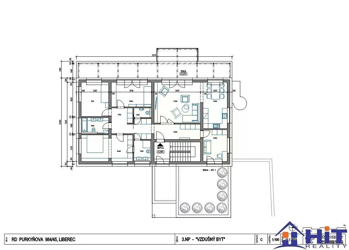Prodej exkluzivního bytu 5+1 s terasami a krásným výhledem - Rezidence Purkyňova, Liberec Ruprechtice Nabízíme k prodeji moderní byt 5+1 o výměře 152 m v prestižní rezidenci Purkyňova v Liberci Ruprechticích. Byt v nejvyšším podlaží disponuje hned dvěma prostornými terasami (65 m) s východní a západní orientací, které nabízejí dechberoucí výhledy na Ještěd a okolní Jizerské hory. Dispozice zahrnuje prostorný obývací pokoj s kuchyní, dvě koupelny, tři WC, pět samostatných pokojů a dostatek úložných prostor. Samozřejmostí jsou dvě parkovací místa, hobby místnost a samostatný sklad v 2. NP. Lokalita Rezidence se nachází v klidné vilové čtvrti Ruprechtice, která patří mezi nejžádanější adresy Liberce. Jižní orientace zaručuje celodenní slunce, v okolí se nachází městský lesík, ZOO, Botanická zahrada, Lesní koupaliště a vyhlídka Liberecká výšina. Centrum města je vzdálené jen pár minut, přesto zde panuje atmosféra klidu a soukromí. Liberec je krajské město s výjimečnou polohou mezi Ještědským hřebenem a Jizerskými horami. Spojuje komfort městského života s bezprostřední blízkostí přírody, což z něj dělá jedno z nejatraktivnějších míst k bydlení v ČR. výborná dopravní dostupnost Praha do 60 minut Milovníci přírody ocení přímé napojení na turistické a cyklistické trasy Jizerských hor s nádhernými výhledy na Ještědský hřeben. Cena 15.356.400 Kč vč. DPH (100.500 Kč/m vč. DPH) Tento byt je ideální volbou pro ty, kteří hledají kombinaci moderního bydlení, vlastní zahrady a jedinečné lokality s atmosférou přírody i blízkostí centra města. CENA K JEDNÁNÍ.