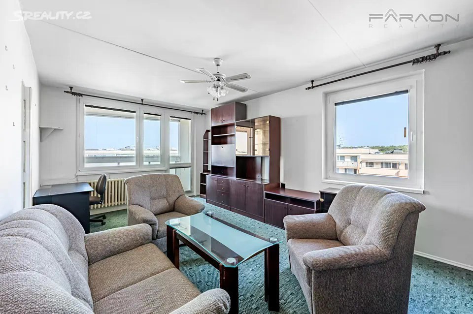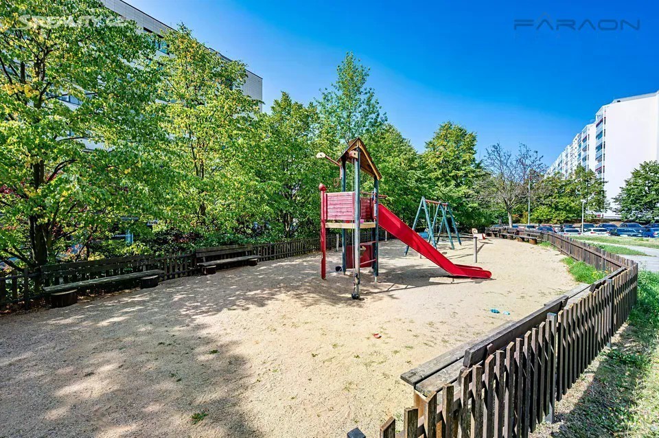REZERVACE - Byt 3+1, v osobním vlastnictví, o celkové ploše 83 m2 s lodžií a sklepem, umístěný v 10. NP zrekonstruovaného panelového domu s výtahem a bezbariérovým vstupem, pár kroků od stanice metra B "Nové Butovice". V rámci nedávné renovace byla zateplena fasáda (en. náročnost budovy B - velmi úsporná), rozšířené a zasklené lodžie, upravené společné prostory domu, dvouplášťová střecha, vyměněny rozvody vody, instalován bezpečnostní kamerový systém a čipový vstup do domu. Samotný byt byl průběžně udržován v dobrém stavu a je vhodný k okamžitému nastěhování. Byla zde měněná okna, vinylové podlahy, rozvody elektřiny, provedena byla rekonstrukce koupelny a wc. Dispozici bytu tvoří předsíň, obývací pokoj, kuchyň, 2 pokoje, koupelna a wc. V suterénu domu přísluší k bytu sklepní kóje s přístupem denního světla. Na prostornou, západně orientovanou lodžii je vstup z obývacího pokoje, okna ložnic směřují na sever. Vyšší patro zaručuje daleké výhledy. Veškeré vybavení na fotografiích je součástí ceny. Kuchyňská linka je původní, s plynovým sporákem, digestoří a lednicí. V koupelně je vana se sprchovací zástěnou. Samostatná toaleta má umyvadlo a bidetovou spršku. Na podlahách je vinyl, koberec nebo dlažba. Okna jsou plastová s dvojskly a interiérovými žaluziemi, v ložnici je venkovní hliníková roleta. Lokalita s rychlou dostupností do centra města. Stanice metra B "Nové Butovice" a zastávka několika autobusů pouhé 3 minuty chůze. Na letiště 15 minut autem. Nedaleko se nachází Centrální park se 2 rybníky, občerstvením a množstvím sportovišť, dále Prokopské a Dalejské údolí, přírodní památka Vidoule, nákupní centrum Galerie Butovice nebo golfové hřiště Motol. V dosahu je veškerá občanská vybavenost: poliklinika, úřad, banka, lékárna, školy i školky. Přímo v domě je kadeřnictví a masáže, za domem dětské hřiště. Přehled ploch: byt 72,6 m2 + lodžie 7 m2 + sklep 3,7 m2 = 83,3 m2