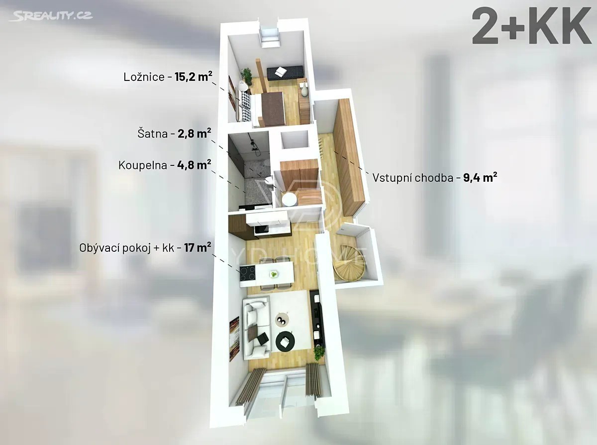 Akční cena! Hledáte bydlení, které spojuje moderní komfort, skvělou dostupnost do centra a jedinečný bonus v podobě vlastní terasy s altánem? Představujeme vám bytovou jednotku o dispozici 2+kk v právě vznikajícím podkroví bytového domu na ulici Sokolovská 160, Praha 8 - Libeň. Tento komorní projekt nabízí pouze několik nových bytů, každý s důrazem na kvalitní provedení, praktické uspořádání a jedinečnou atmosféru bydlení v domě, který prošel částečnou rekonstrukcí. Nabízený byt má celkovou užitnou plochu včetně příslušenství 76,20 m², z toho samotná plocha bytu činí 56,60 m². K bytu dále náleží terasa o velikosti 16,30 m² a sklep o velikosti 3,30 m². Jeho skutečnou dominantou je však soukromá terasa se střešním altánem o velikosti 7,4 m². Terasa je orientovaná na jihovýchodní stranu, díky čemuž nabízí dostatek slunce a opravdu skvělý výhled do okolí. Pokud hledáte bydlení, které poskytne maximální soukromí, tento byt je pro vás ideální volbou. Co vám tento byt nabízí? • moderní dispozici 2+kk - obývací pokoj s kuchyňským koutem, ložnici, koupelnu, šatnu a prostornou chodbu • privátní střešní terasu s altánem, ideální pro relax nebo grilování • orientaci na jihovýchod - světlý byt a krásné výhledy • možnost klientských změn dle přání budoucího vlastníka • byt v posledním patře - maximum klidu a soukromí • předpokládaný termín dokončení: 4Q/26 Lokalita, která má vše na dosah Bytový dům se nachází na Sokolovské ulici, jen pár minut chůze od metra B - Palmovka a Invalidovna. Tramvajová zastávka je přímo u domu, díky čemuž je centrum Prahy dostupné během několika minut. V okolí najdete veškerou občanskou vybavenost - supermarket, kavárny, restaurace, cyklostezku podél Vltavy i sportoviště. Nedaleký Rohanský ostrov pak nabízí zelené plochy pro relaxaci i sport. Zaujala vás tato nabídka? Neváhejte nás kontaktovat. Rádi vám zajistíme výhodné financování, nebo pomůžeme s prodejem vaší stávající nemovitosti. Tento byt doporučujeme vidět osobně - jeho atmosféra vás okamžitě přesvědčí.