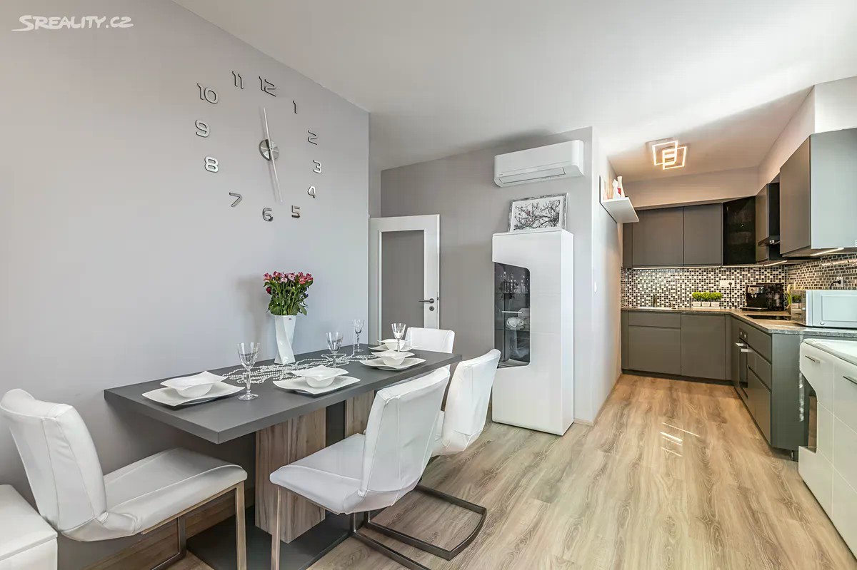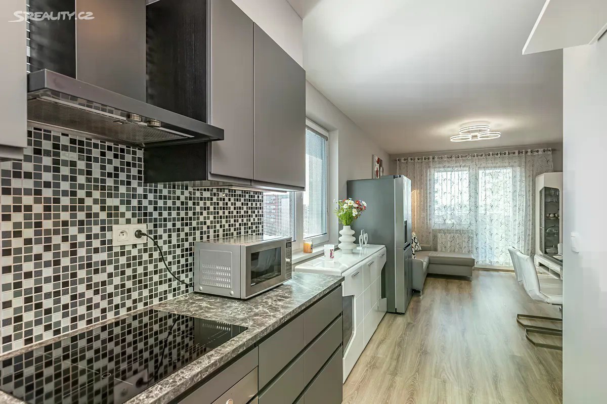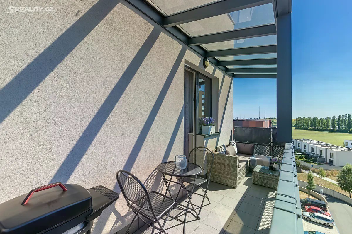 Ve výhradním zastoupení majitelky uvádím do nabídky k prodeji krásný, moderní byt o užitné ploše 60m2 s balkonem 9m2, nacházející se v 7NP novostavby bytového komplexu Residence Veselská, Praha - Letňany. Byt je řešen jako 2+kk: velký obytný prostor, spojený otevřeným konceptem s kuchyňským koutem, poskytuje dostatek místa jak pro velký jídelní stůl, sedací soupravu tak i obývací stěnu s televizí. Dále je k dispozici samostatná ložnice, koupelna s toaletou a předsíň. Z obývacího pokoje i ložnice můžete vstoupit na balkon o velikosti 9m2. Balkon, orientovaný na jižní stranu a zastřešený hliníkovou pergolou, bude v letních měsících místem, kde je možné relaxovat v lehátku během víkendu, večer si posedět při skleničce vína, grilovat a nebo pěstovat květiny. Poskytne majitelům i krásný výhled do okolí. Součástí prodeje je plně vybavená kuchyňská linka včetně spotřebičů / elektrická trouba, mikrovlná trouba, varná deska, digestoř, myčka nádobí/. Dostatek úložných prostor zajišťují velké skříně v předsíni, a také v ložnici. Ostatní nábytek je možno ponechat po domluvě. Ve všech místnostech jsou velkoformátová okna, byt je tak krásně osvětlený a prosluněný. Podlahové krytiny jsou laminátové - dekor dřeva v kombinaci s dlažbou v koupelně a předsíni. Pro větší komfort je zde umístěna klimatizační jednotka a ve všech oknech jsou instalovány žaluzie. Vytápění i ohřev teplé vody je centrální. K bytu náleží garážové stání v suterénu domu. Dostatek úložného prostoru zajišťuje zděný sklep o velikosti 5,5m2 s bezpečnostní mříží v 1 PP domu. Dům, jako celek, je ve výborném stavu, čistý s perfektně udržovanými společnými prostory. V domě je výtah. Letňany jsou rychle se rozvíjející moderní lokalita. V místě je plná občanská vybavenost včetně dostupnosti MHD. Zastávka autobusu přímo před domem, 15 min dojezd na linku metra "C". V blízkosti se nachází škola, školka, obchody s potravinami i restaurace. Mnoho obchodních i zábavních příležitostí naleznete v rozlehlém OC Letňany. V okolí je dostatek zeleně, také dětská hřiště i sportoviště a plavecký bazén. Byt je perfektní pro dvojice, rodinu s jedním dítětem a s ohledem na klidnou lokalitu také pro seniory. Nemovitost poskytuje krásné bydlení s možností relaxace a odpočinku v pěkném prostředí a zároveň s výhodami nákupních příležitostí s snadnou dostupností do centra města.
