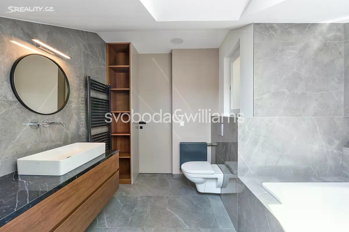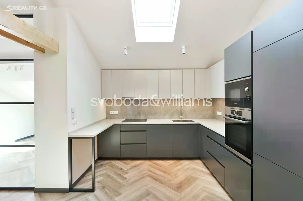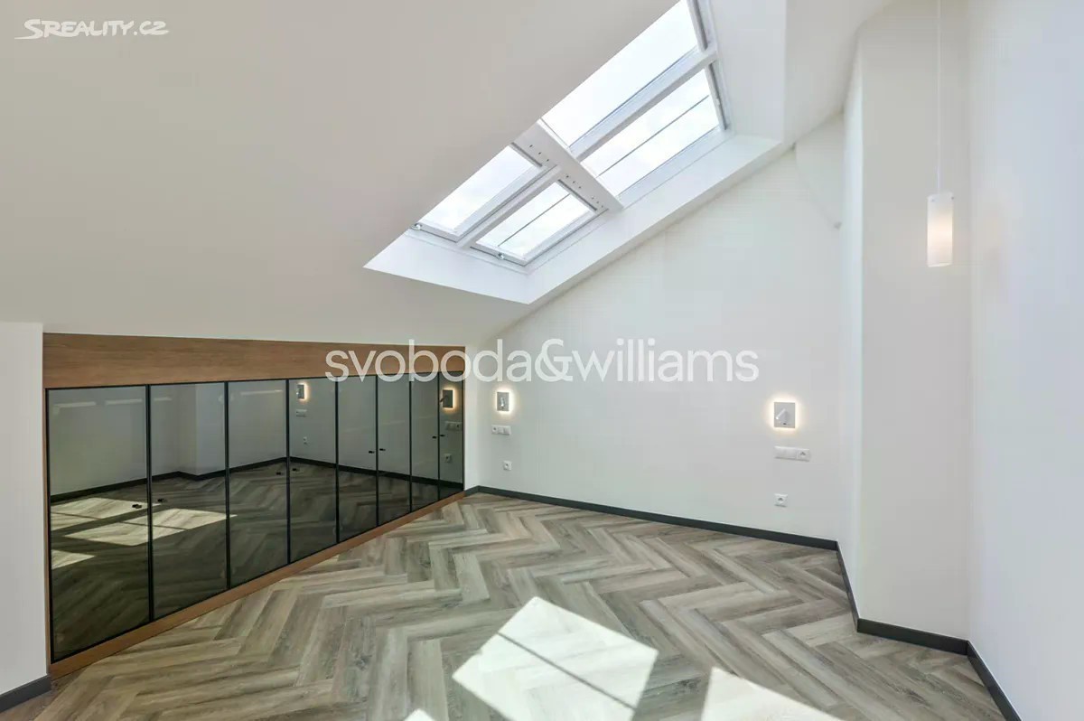 Nabízíme k pronájmu moderní, plně klimatizovaný půdní mezonetový byt se 2 koupelnami, navržený architektonickým Studiem acht. Byt leží v 5. patře secesní budovy po kompletní rekonstrukci dle návrhu studia SAD. Dům s výtahem se nachází v historickém centru Prahy, v blízkosti nábřeží Vltavy, Staroměstského náměstí a Pařížské ulice. Prestižní lokalita s veškerou občanskou vybaveností v bezprostředním okolí, v pěším dosahu stanic metra Náměstí Republiky a Staroměstská. Spodní úroveň bytu tvoří obývací pokoj s plně vybavenou kuchyní, skleněnou stěnou oddělená ložnice, koupelna s vanou a toaletou, technické zázemí a vstupní chodba. V horním patře je umístěna druhá ložnice, koupelna se sprchou a toaletou a galerie s šatnou, pracovním koutem a velkým vestavěným úložným prostorem. Vestavěné skříně a úložné prostory, vinylové podlahy, velkoformátová dlažba, bezpečnostní vstupní dveře, designová svítidla, plynový kotel, pračka, sušička, myčka, indukční varná deska, mikrovlnná trouba, videotelefon, vstup do budovy na čip.