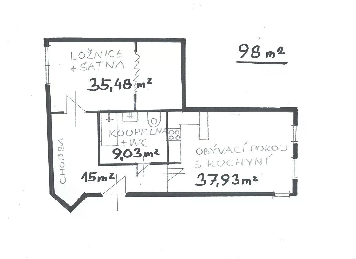 Výhradní nabídka prodeje prostorného zděného bytu umístěného poblíž křížení ulic Rudolfovská/Na Sadech, České Budějovice, v sousedství městského parku a centrálního náměstí Přemysla Otakara II. Tento atypický byt má dispozici 2+kk (možno 3+kk) a podlahovou plochu 98 m2.Byt se nachází ve 2.patře (3.N.P.) bytového domu o celkem 5 nadzemních podlažích. Dispozice bytu: zádveří+chodba - 15 m2, koupelna s WC - 9,03m2, ložnice+šatna -35.48m2 (možno rozdělit) obývací pokoj s kuchyní- 37.93. K bytu náleží sklepní kóje v 1.N.P.o výměře cca 1.5 m2. Do ul.Ruolfovská jsou orientována okna obýv.pokoje.Do vitrobloku je orientováno okno ložnice s balkonovými dveřmi.Balkon je možné dodatečně zřídit (ve fasádě je provedena příprava a v prohlášení vlastníka je balkon též uveden) Byt má vlastní ústřední topení s plynovým kotlem BAXI a rozvody s radiátory. Byt byl dokončen v r 2014 a je proveden v následujícím provedení : vnitřní dveře dýhované +obložkové zárubně,povrchy podlah- keram.dlažby+laminátové plovoucí,okna plastová s izolačními dvojskly,moderní koupelna se samostatně stojící vanou,umyvadlem a závěsným WC,vybavená kuchyňská linka s vestavěnými spotřebiči,barem a dvěma digestořemi atd.Na chodbě prostorný výtah Schindler. Dům je zateplen-energetická třída C. Díky výborné poloze s blízkostí zeleně a zároveň dostupnosti do centra města je tento byt zajímavý pro široké skupiny zájemců.