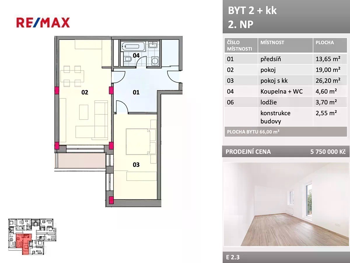 V exkluzivním zastoupení nabízíme prodej nové bytové jednotky 2+kk v developerském projektu Rezidence Barcelona na ulici Bezručova v centru města Frýdku - Místku. Tato prostorná a vzdušná bytová jednotka o ploše 66 m² se nachází v 2. nadzemním podlaží v sekci E, která je postavena jako první etapa projektu. K bytu náleží lodžie, která poskytuje příjemný venkovní prostor pro relexaci. Byt disponuje moderní koupelnou s vanou a toaletou, která je součástí jednoho celku - praktické a elegantní řešení v moderním stylu. Upozorňujeme, že byt zatím není zkolaudovaný. Aktuálně se skládá 80 % z kupní ceny, přičemž doplatek 20 % proběhne po kolaudaci, která je plánována do konce letošního roku. K dispozici jsou k pronájmu parkovací stání a sklep, které bude po ukončení výstavby možné také odkoupit do osobního vlastnictví. Rezidence je umístěna ve výjimečné lokalitě na okraji sadů Bedřicha Smetany lemující řeku Ostravici. V blízkosti jsou důležité body města, jako je náměstí Svobody, OC Frýda, autobusové a vlakové nádraží, městský úřad, poliklinika, školy, školky a další městská infrastruktura. Projekt Rezidence Barcelona se skládá z osmi pětipodlažních bytových sekcí, jež nabízejí celkem 117 bytových jednotek. Náš hypoteční specialista Vám bezplatně zajistí nejvýhodnější financování u banky spolupracující na tomto projektu. Pro více informací mne neváhejte kontaktovat.
