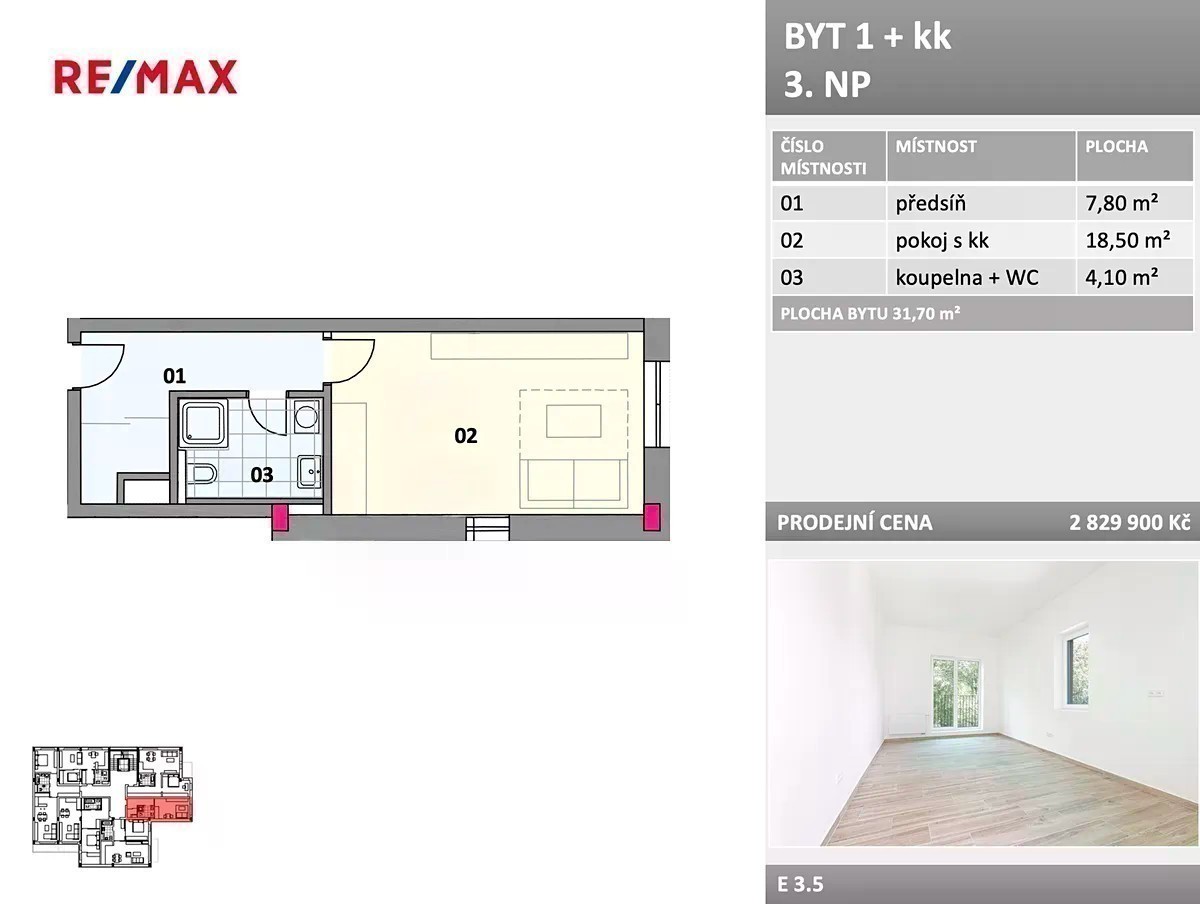 V exkluzivním zastoupení nabízíme prodej nové bytové jednotky 1+kk v developerském projektu Rezidence Barcelona na ulici Bezručova v centru města Frýdku - Místku. Tato prostorná a vzdušná bytová jednotka o ploše 31,7 m² se nachází v 3. nadzemním podlaží v sekci E, která je postavena jako první etapa projektu. Byt disponuje moderní koupelnou se sprchovým koutem a toaletou, která je součástí jednoho celku - praktické a elegantní řešení v moderním stylu. Upozorňujeme, že byt zatím není zkolaudovaný. Aktuálně se skládá 80 % z kupní ceny, přičemž doplatek 20 % proběhne po kolaudaci, která je plánována do konce letošního roku. K dispozici jsou k pronájmu parkovací stání a sklep, které bude po ukončení výstavby možné také odkoupit do osobního vlastnictví. Rezidence je umístěna ve výjimečné lokalitě na okraji sadů Bedřicha Smetany lemující řeku Ostravici. V blízkosti jsou důležité body města, jako je náměstí Svobody, OC Frýda, autobusové a vlakové nádraží, městský úřad, poliklinika, školy, školky a další městská infrastruktura. Projekt Rezidence Barcelona se skládá z osmi pětipodlažních bytových sekcí, jež nabízejí celkem 117 bytových jednotek. Náš hypoteční specialista Vám bezplatně zajistí nejvýhodnější financování u banky spolupracující na tomto projektu. Pro více informací mne neváhejte kontaktovat.