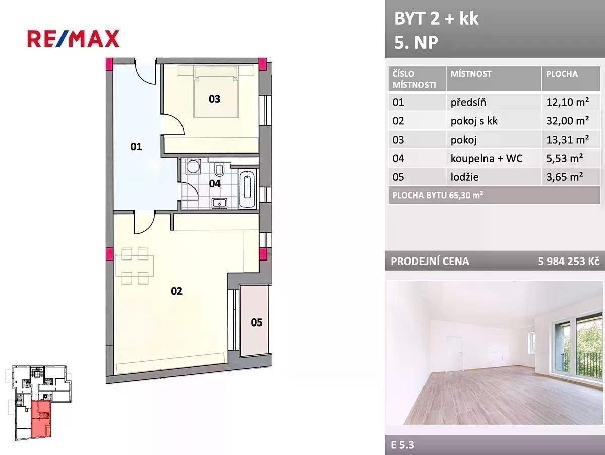 V exkluzivním zastoupení nabízíme prodej nové bytové jednotky 2+kk v developerském projektu Rezidence Barcelona na ulici Bezručova v centru města Frýdku - Místku. Tato prostorná a vzdušná bytová jednotka o ploše 65,3 m² se nachází v 5. nadzemním podlaží v sekci E, která je postavena jako první etapa projektu. K bytu náleží lodžie, která poskytuje příjemný venkovní prostor pro odpočinek. Byt disponuje moderní koupelnou s vanou a toaletou, která je součástí jednoho celku - praktické a elegantní řešení v moderním stylu. Upozorňujeme, že byt zatím není zkolaudovaný. Aktuálně se skládá 80 % z kupní ceny, přičemž doplatek 20 % proběhne po kolaudaci, která je plánována do konce letošního roku. K dispozici jsou k pronájmu parkovací stání a sklep, které bude po ukončení výstavby možné také odkoupit do osobního vlastnictví. Rezidence je umístěna ve výjimečné lokalitě na okraji sadů Bedřicha Smetany lemující řeku Ostravici. V blízkosti jsou důležité body města, jako je náměstí Svobody, OC Frýda, autobusové a vlakové nádraží, městský úřad, poliklinika, školy, školky a další městská infrastruktura. Projekt Rezidence Barcelona se skládá z osmi pětipodlažních bytových sekcí, jež nabízejí celkem 117 bytových jednotek. Náš hypoteční specialista Vám bezplatně zajistí nejvýhodnější financování u banky spolupracující na tomto projektu. Pro více informací mne neváhejte kontaktovat.
