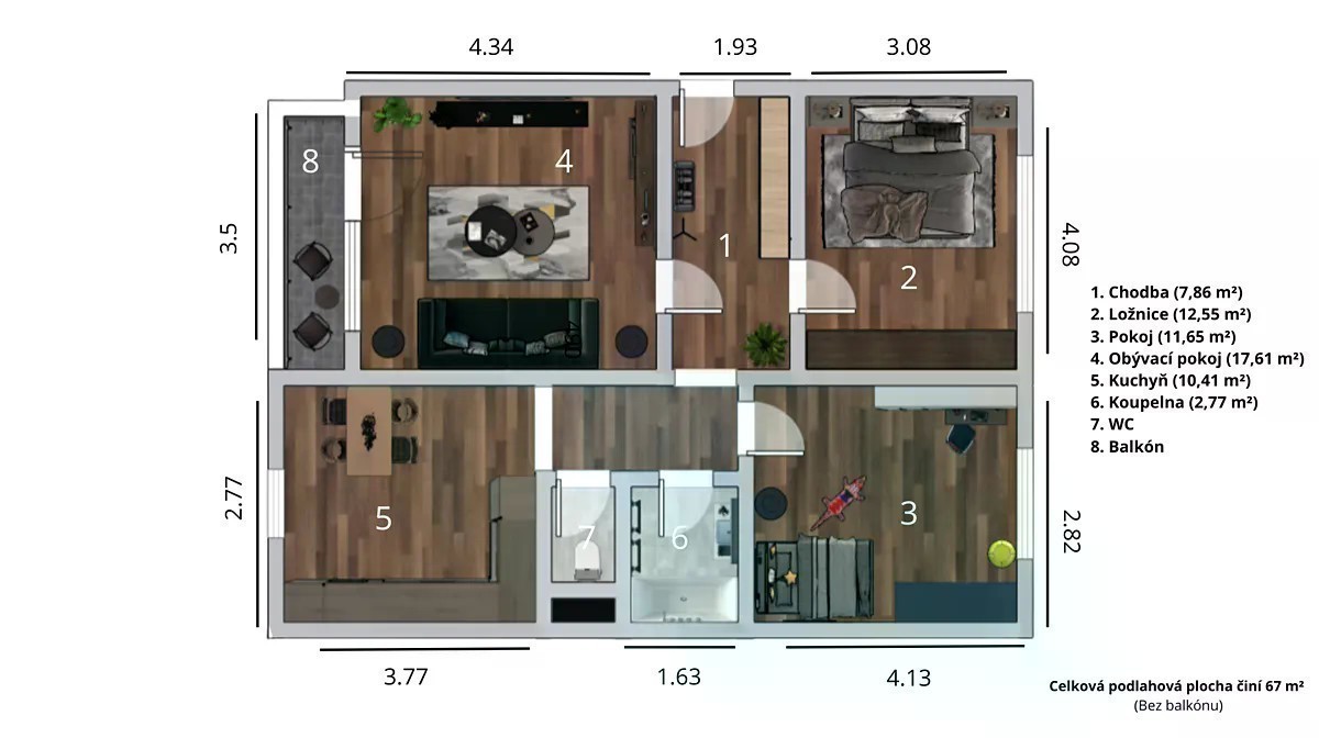 Nabízíme k prodeji světlý a prostorný byt o dispozici 3+1 (67 m²) v 5. patře z 8 s výtahem. Byt je připraven ihned k nastěhování, pyšní se krásným výhledem a nabízí balkón a sklepní kóji v suterénu. Na patře je navíc společná místnost využívaná jako sušárna. Dispozice: chodba, obývací pokoj, moderní kuchyňská linka (2025), dva samostatné pokoje, koupelna a samostatné WC. Nemovitost leží v klidné rezidenční čtvrti Liberec VI - Rochlice, ulice Ježkova. Lokalita nabízí veškeré služby v docházkové vzdálenosti - obchody, školky, školy, zdravotní zařízení, poštu i sportoviště, vše jednoduše dostupné pěšky. Dopravní dostupnost: • Centrum Liberce: cca 10 minut MHD nebo autem • Jablonec nad Nisou: cca 15 minut • Turnov: cca 25 minut • Praha (Černý Most): cca 1 hodina po dálnici D10 Výhodou je rychlé napojení na dálnici D10, které zajišťuje pohodlnou dostupnost i do dalších velkých měst. • Cena: 5 049 000 Kč • Měsíční náklady (fond oprav, topení, elektřina, voda): cca 6 200 Kč • Zajistím vám nejvýhodnější úvěr na trhu a kompletně se postarám o jeho realizaci. Pro více informací a sjednání prohlídky nás neváhejte kontaktovat.
