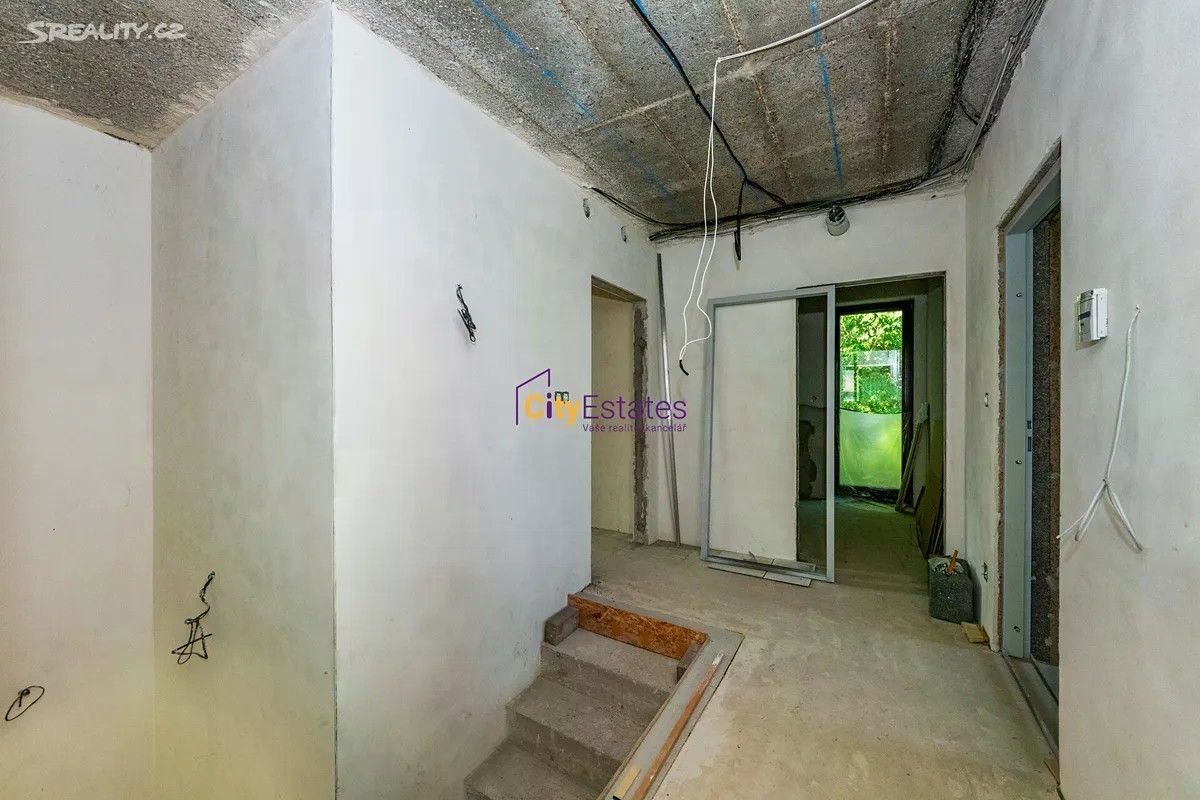V zastoupení klienta nabízíme k prodeji vícegenerační vilu před dokončením v Praze Strašnicích, ulice Hvozdnická. Místo, kde vila stojí, je zcela výjímečné, slepá ulice plná zeleně a přitom jen 5 minut chůze na metro a ke stanicím tramvaje. V blízkém parku Gutovka naleznete plno volnočasových aktivit pro děti i dospělé. V podzemním podlaží domu jsou dvě garáže. Dále je zde 5 skladů, kde lze vybudovat prostor pro podnikání a kotelna. V každém patře se nachází jeden malometrážní byt s vlastním sociálním zázemím a kuchyňkou - buď jako startovací byty pro děti, nebo byty, kde se můžete postarat o své rodiče. Hlavní obytný prostor je mezonetový, velký obývací pokoj s kuchyní s bočním východem na terasu a dvě ložnice s koupelnou. V patře se nachází ložnice, pracovna či druhá ložnice, hlavní koupelna, šatna a prádelna. Střecha je "zelená". Toto řešení snižuje náklady na vytápěńí, zlepšuje mikroklima a omezuje hluk. Dům je před dokončením, je třeba dodělat koupelny, položit podlahy, instalovat kuchyšké linky, zábradlí na schodišti a jeho finální povrch. To vše dává novým majitelům prostor dokončit nemovitost dle vlastních potřeb a představ. Majitel nabízí spolupráci při případných změnách projektu před jeho dokončením. Prohlídky nemovitosti po předchozí dohodě i přes víkend, Vážným zájemcům poskytneme stavební dokumentaci a také stavební povolení. Vizualizace ukazují možnosti dokončení interiéru.