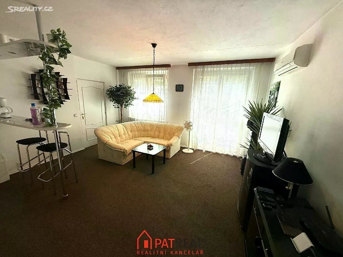 Ve výhradním zastoupení majitele nabízíme k prodeji pěkný a vybavený byt 2+kk s předzahrádkou na ulici Blatnická v Brně. Byt se nachází v 1. nadzemním podlaží panelového domu. Bytové jádro je původní, avšak dobře udržované. Obývací pokoj je vkusně zařízen rohovou sedací soupravou a navazuje na kuchyňský kout s barovým pultíkem, stoličkami, kuchyňskou linkou a elektrickým sporákem se sklokeramickou deskou. Z obývacího pokoje je přímý vstup na oplocenou předzahrádku o velikosti 31 m², která poskytuje příjemné soukromí a prostor pro odpočinek. Druhý pokoj je prakticky zařízen vestavěnou skříní na míru a patrovou postelí, pod níž je umístěn pracovní koutek s PC stolem. Pro větší komfort je byt vybaven klimatizací. K bytu dále náleží sklepní kóje. Byt je volný ihned a připraven k nastěhování. Díky své dispozici a poloze je vhodný jak jako investiční byt k pronájmu, tak i jako startovací bydlení pro mladou rodinu. Pro více informací či sjednání prohlídky kontaktujte makléře.