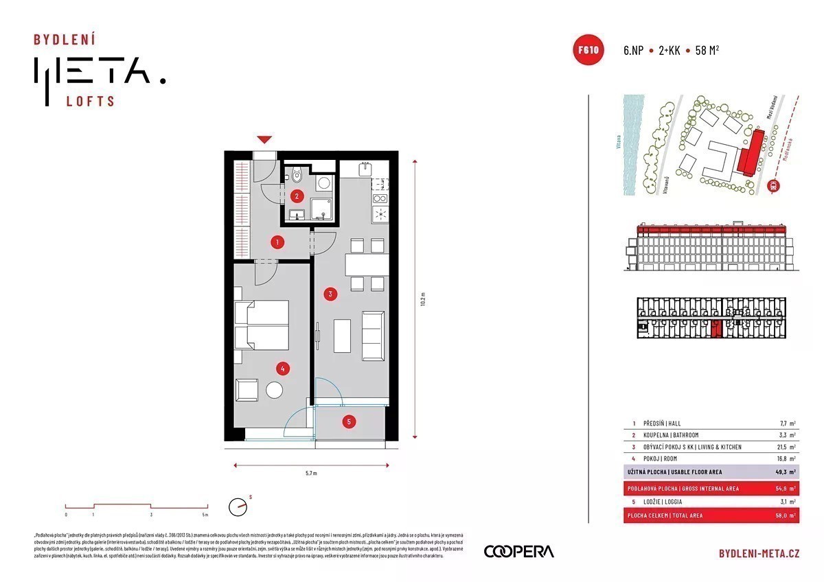 Nabízíme Vám moderní jednotku o dispozici 2+kk (58,0 m2), s lodžií (3,1 m2) s klimatizací v 6. NP, s orientací na východ v projektu Bydlení META Modřany. Jedná se o velmi praktickou standardní jednotku tohoto projektu. Výstavba byla zahájená v prosinci 2024, rezervace probíhají. Další podobné jednotky si můžete vybírat z nabídky na webových stránkách projektu. V první etapě tohoto nového projektu vznikají revitalizací industriální budovy Chirana lofty, které si díky své nadstandardní výšce cca 4,3 m přímo říkají o vestavěné patro. V rámci této etapy tak vznikne celkem 135 loftů s galerií a v posledních dvou patrech budovy také 50 klasických jednotek ve standardních dispozicích 2+kk a 3+kk. Za architektonickým návrhem stojí oblíbení a zkušení QARTA Architekti. Tato konkrétní standardní jednotka 2+kk je velice účelně řešená. Ze vstupní předsíně, kde najdete dostatek úložných prostor, se vstupuje do koupelny se sprchovým koutem a WC, a dále do samostatné ložnice a do obývacího pokoje. Zde kuchyňský kout s jídelní částí plynule navazuje na klidovou obývací část, což tvoří dohromady jeden otevřený prostor, který je zakončen prosklenou stěnou se vstupem na lodžii. V rámci výběru zařizovacích předmětů, obkladů, dlažby a podlahové krytiny vám nabízíme tři základní varianty: Normal, Plus nebo Black & White. Ale již ve variantě Normal, která je zahrnutá v ceně každé jednotky, obdržíte velmi kvalitní veškeré zařizovací předměty. Součástí každé jednotky bude rovněž rekuperace vzduchu, podlahové vytápění, kvalitní okna s trojskly, venkovní stínění atd. Modřany, to je pražská čtvrť nekonečných možností a vyžití. Bezprostřední blízkost řeky Vltavy, cyklostezky, nespočet sportovních zařízení a také golfového klubu s restaurací, nedaleký park Modřanská rokle, to vše nabízí příležitost relaxace a sportovních aktivit. V Modřanech funguje veškerá občanská vybavenost pro celé rodiny včetně školek, škol, zdravotnických zařízení a míst pro kulturní vyžití. Výhodou tohoto místa je v neposlední řadě i vynikající dopravní dostupnost centra města, kam se dostanete přímou tramvajovou linkou za 25 minut. Bydlení META Modřany je novým rezidenčním projektem joint venture KKCG Real Estate Group a Alma development. Pro více informací o tomto projektu navštivte naše webové stránky Bydlení META Modřany. Nebo si telefonicky sjednejte schůzku v našem prodejním centru na adrese Modřanská 409, Praha 4, kam jste srdečně zváni.