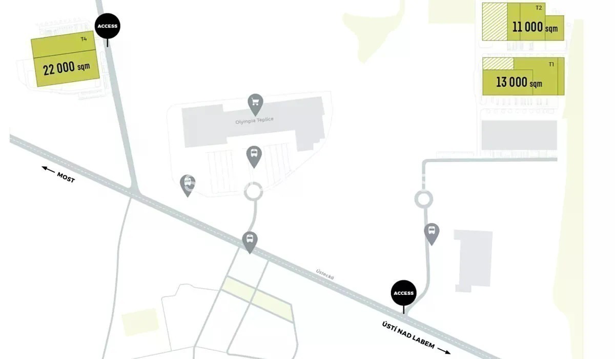 12 500 m2 výrobních, skladových a kancelářských prostor k pronájmu v Teplicích. Prostory ve standardu A-Class jsou vhodné pro skladování, logistiku nebo lehkou výrobu a lze je přizpůsobit požadavkům klienta. Lokalita: Park se nachází v severočeském regionu, těsně u dálnice D8 a německých hranic. Díky blízkosti měst Teplice a Ústí nad Labem je snadno dostupný pro zaměstnance. Do parku jezdí i veřejná doprava. Vybavení a služby: - flexibilní jednotky (sklad / kancelář / lehká výroba / showroom) - správa nemovitosti přímo v areálu - bezpečnostní služba v místě (24/7) - údržba budov - dostatečná parkovací plocha - vysoké standardy budov - technická podpora na místě Výrobní/skladové prostory: - Polohovací brány & nakládací rampy - přímé vjezdy - nosnost podlahy 5 t/m2 - světlá výška 10 m - modul sloupů 12x24 m - LED osvětlení - ESFR sprinklerové hasící zařízení Kanceláře: - kancelářské prostory na míru - klimatizace Nájemce neplatí provizi.