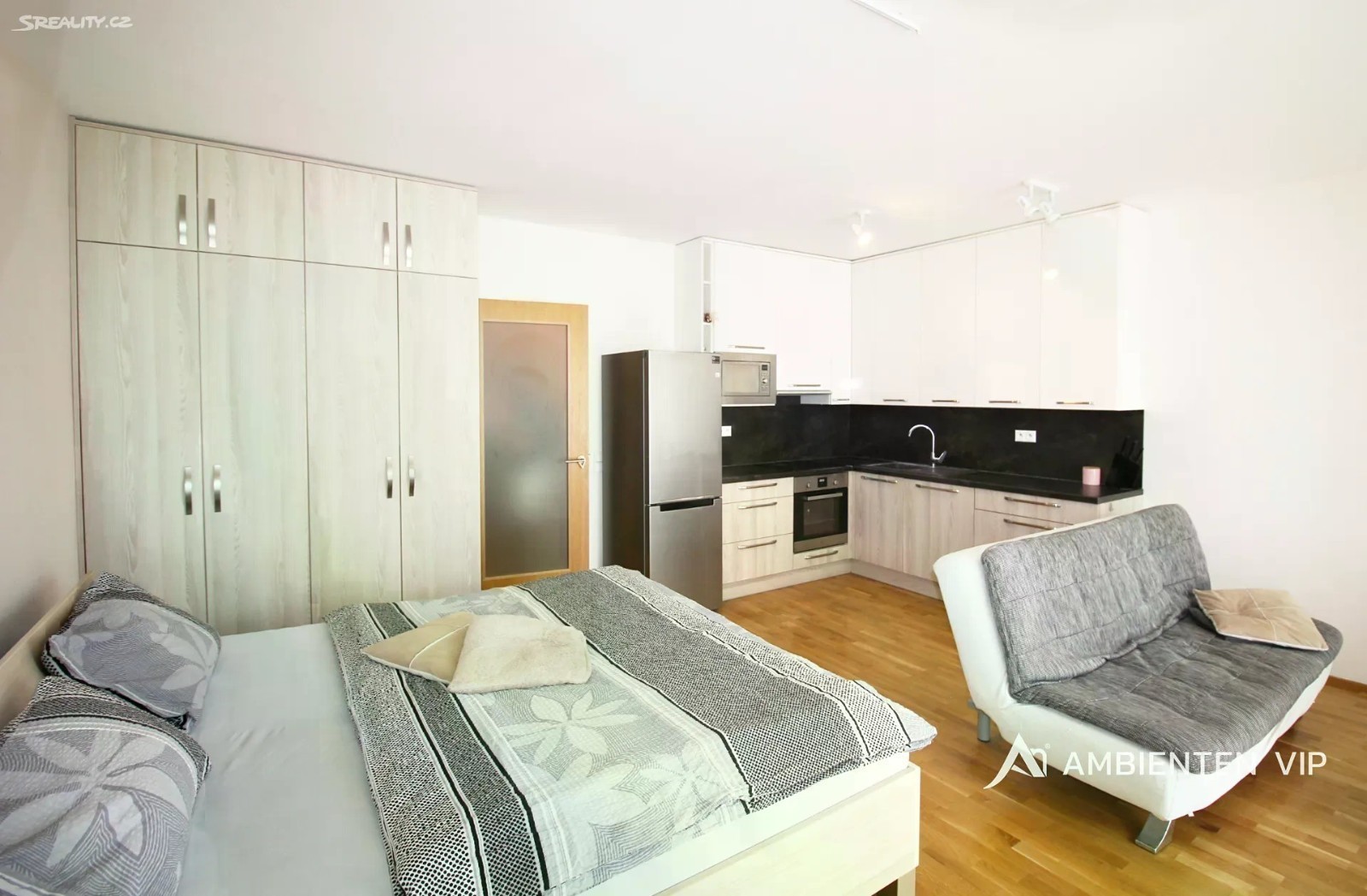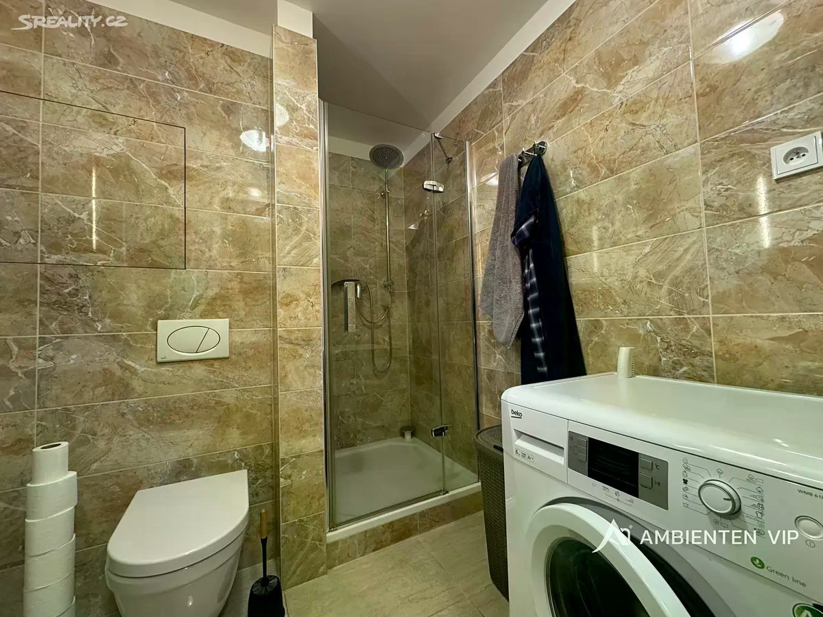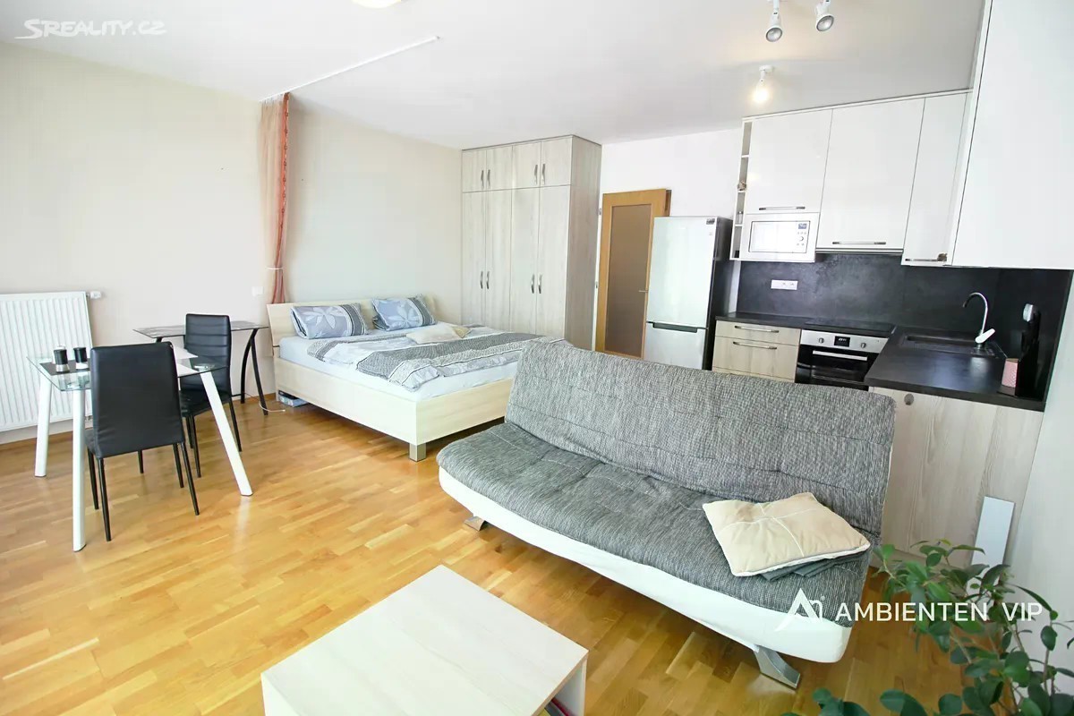 AMBIENTEN VIP nabízí pronájem krásného bytu o dispozici 1+kk a celkové ploše 52m2. Byt se nachází v 4. NP cihlového domu s výtahem. Jednotka se nabízí k pronájmu vybavený včetně velmi pohodlné dvoulůžkové postele, rozkládacího gauče, konferenčního stolku, jídelního stolu, dvou židlí, velké šatní skříně. V kuchyni se nachází trouba, sklokeramická deska, mikrovlnná trouba, lednice. V koupelně je k dispozici sprchový kout, toaleta, umyvadlo s úložným prostorem se zrcadlem a pračka. V celém bytě jsou parkety, v koupelně dlažba. K bytu lze pronajmout parkovacího stání + 2.000 Kč měsíčně. Nastěhování je možné od 1.12.2025. Kauce činí 2 měsíční nájmy vč. energií služeb. Vřele doporučujeme prohlídku tohoto krásného bytu. Pro více informací a domluvení termínu prohlídky se neváhejte informovat u realitního specialisty uvedeného u inzerátu.