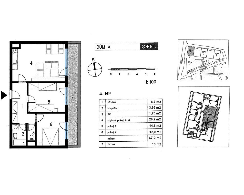 Prodej bytu 3+kk (67 m2) s terasou o výměře 13 m2 a sklepem o výměře 1,5 m2. Byt je dispozičně řešen jako bezbariérový, východně orientovaný 3+kk, dominantou bytu je světlý obývací pokoj (26,2 m2) s výstupem na terasu (13 m2) s výhledem do parku a zeleného vnitrobloku. Dále ložnice (14,6 m2) a dětský pokoj (12 m2) se samostatnými vstupy z chodby. Výstup na terasu je ze všech pokojů, podél celého bytu. Prostorná chodba s maximálním využitím pro vestavěné skříně, koupelna s vanou a samostatné WC. K bytu náleží sklep a podzemní parkovací stání (není v ceně), přikupuje se celkem za 400.000 Kč. Pro svoji polohu v centru Kbel je vhodný i na investici a pronájem. Byt je vybaven kuchyňskou linkou včetně spotřebičů, klimatizace, na terase markýza. Na podlaze plovoucí podlahy a dlažba, dřevěné interiérové dveře s obložkami, okna plastová. V bytě jsou na míru řešené vestavěné skříně, v některých místnostech jsou využity i horní části, podhledy a výklenky. Byt má vyšší stropy (2,75 m). Byt má šikovné dispoziční řešení a dostatek úložného prostoru. Byt se nachází v udržovaném bytovém domě v centru Kbel, kde je opravdu vše po ruce. Veškerá občanská vybavenost, úřady, zdravotní středisko, obchody, restaurace, lékárna, bankomat, škola i školky, sportovní hala, nedaleko bazén a vetší nákupní centrum Letňany. Možnost aktivního odpočinku, přímo vedle domu začíná park, rybník, psí hřiště, golf Vinoř, lesopark a množství cyklostezek. Poloha přímo u autobusové zastávky Kbely - 7 minut na metro C-Letňany, 16 minut na metro B-Vysočanská. Na vlakové nádraží Praha-Kbely dojdete pěšky přes park za 5 minut: směr Masarykovo nádraží 22 minut (Nádraží Vysočany 11 minut).