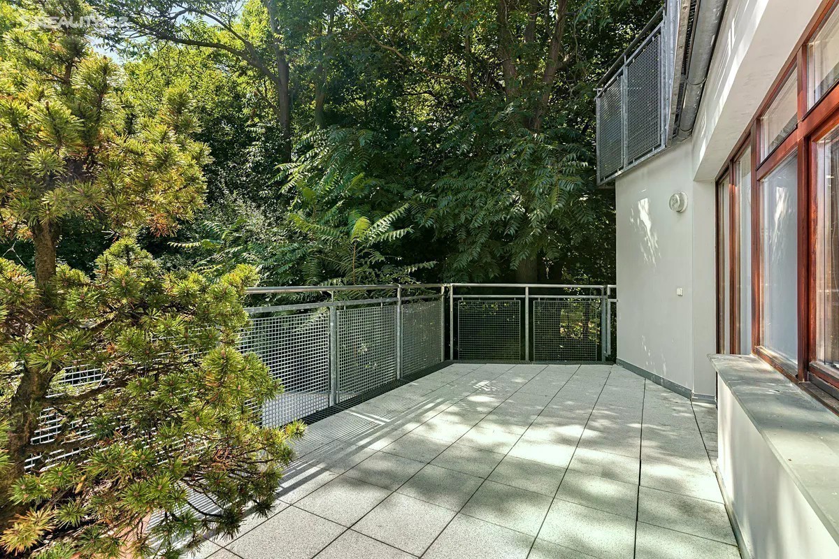 Nabízíme atraktivní byt 4+KK v osobním vlastnictví o výměře 108 m2, se dvěma terasami 15,67 m2 + 18,16 m2, dvěma balkóny 14,83 m2 + 17,25 m2, garážovým stáním a sklepem v suterénu. Bytová jednotka se nachází v domě z roku 2004 ve vyhledávané lokalitě Břevnova, v blízkosti Strahova a Pražského hradu. Současná dispozice bytu nabízí obývací pokoj s kuchyňským koutem 38,43 m2, 3 ložnice 16,44 m2, 14,67 m2, 14,14 m2, halu 12,24 m2, koupelnu s vanou a 2 umyvadly 9,82 m2, WC 1,19 m2 a komoru 1,24 m2. Kuchyně disponuje vestavěnou sklokeramickou varnou deskou, horkovzdušnou troubou, myčkou a lednicí s mrazákem. Vytápění je ústřední plynové, užitková voda je ohřívána bojlerem. Velká dřevěná okna zajištují dostatek denního světla. Parketové masivní podlahy dodávají interiéru nadčasovou eleganci. Bezpečnost je zajištěna v domě kamerovým systémem, v bytě pak vstupními bezpečnostními dveřmi s alarmem. Velkou předností bytu je kromě výjimečné lokality, nezaměnitelná atmosféra bytu navozující, díky terasám a balkónům, pocit pobytu v domě se zahradou, přesto však téměř v centru metropole. Náklady na provoz bytu, garážového stání a sklepu jsou ve výši 4.812,- Kč, včetně fondu oprav + zálohy na elektřinu a plyn. Samozřejmostí je rychlé vyřízení hypotéky za příznivých podmínek.