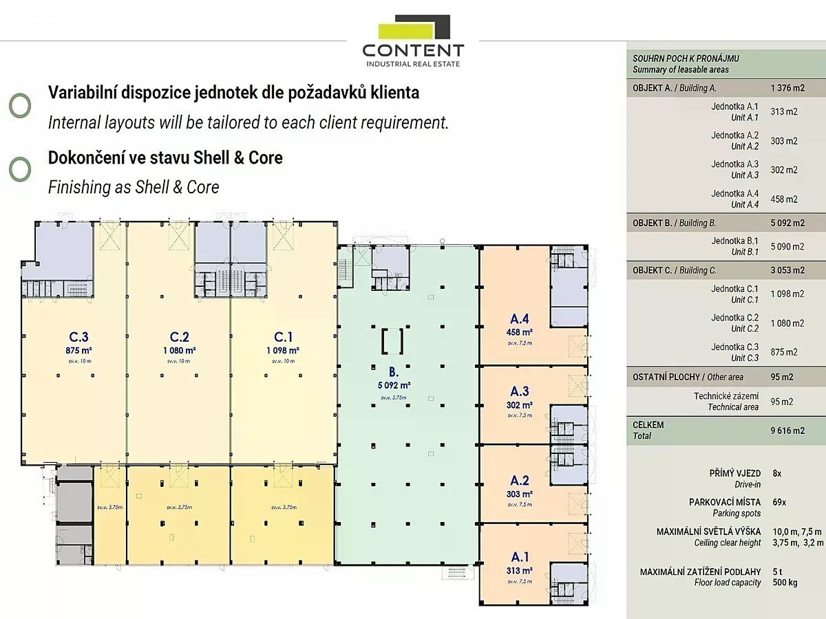 Pronájem skladu, výrobních prostor nebo prodejních prostor 458 m² (jednotka A.4). Praha 10 - Malešice. V zastoupení majitele a bez provize nabízíme nebytové prostory v menším uzavřeném areálu, který prochází kompletní rekonstrukcí a dostavbou. Tento prvotřídní projekt nabízí různé flexibilní typy prostor (SBU) dle Vašich potřeb - sklady, výrobní prostory, showroom, kanceláře, vývoj, laboratoře, atd., umístěné v přízemí industriální budovy, kancelářské prostory jsou ve dvou podlažích. - plánované dokončení do poloviny roku 2027 - 261 m² industriálních prostor se světlou výškou 7,5 m - kancelářské prostory 79 m² v přízemí + 118 m² v patře propojených schodištěm - zásobovací vjezd v úrovni vozovky - nosnost podlah 5t/m² - osobní vstup - parkování před budovou - výborná dostupnost MHD - celková pronajímatelná plocha v jednom celku až 1376 m² (celá budova A) - úpravy i dělení prostor dle potřeby Cena nájmu je individuální, dle dalších podmínek smlouvy + služby. Fotografie jsou ilustrační. Pro více informací o tomto projektu nás neváhejte kontaktovat, rádi zodpovíme Vaše dotazy.