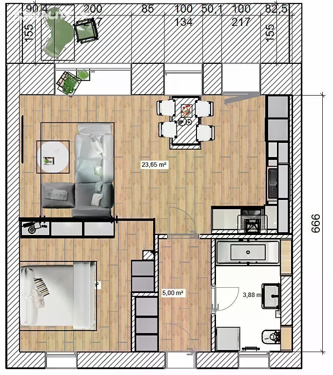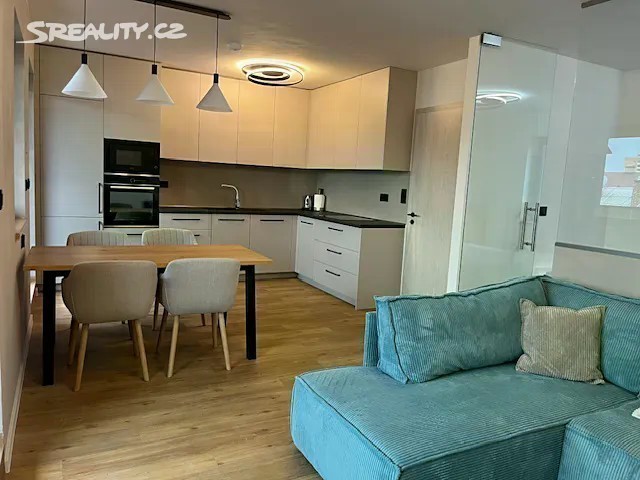 Nabízíme k pronájmu krásný, nadstandardně zařízený byt o dispozici 2+kk a výměře 47 m², který se nachází ve 3. podlaží moderní cihlové novostavby s výtahem. Byt je ideální volbou pro jednotlivce nebo pár hledající komfortní bydlení v moderním stylu s výbornou dopravní dostupností. Vstup do bytu je zajištěn vlastním vchodem ze zadní části domu, což poskytuje větší klid a soukromí. Byt je dispozičně řešen jako prostorný obytný prostor s kuchyňským koutem a částečně oddělenou spací částí. Moderní kuchyňská linka vyrobená na míru je vybavena všemi vestavnými spotřebiči v nejvyšší kvalitě - indukční varnou deskou, troubou, mikrovlnnou troubou, myčkou a vestavnou lednicí. Koupelna je vybavena prostorným sprchovým koutem, pisoárem, toaletou a topným žebříkem. Vstupní chodba je zařízena botníkem, zrcadlem a věšákem přičemž jednu stěnu zdobí designové dřevěné lamely. Spací kout je elegantně oddělen skleněnou příčkou, která zajišťuje soukromí a zároveň zachovává vzdušnost prostoru. Veškerý nábytek v bytě je vyroben na míru s důrazem na kvalitu a design, součástí vybavení je mimo jiné pohodlná postel a vkusné dekorace. Okenní otvory jsou osazeny elektrickými zatemňovacími roletami pro maximální komfort. Velkou výhodou bytu je prostorný balkon, který je přístupný jak z obývací části, tak z kuchyně, a nabízí příjemné místo pro relaxaci. K bytu dále náleží vlastní parkovací stání v areálu objektu a prostorný sklep. Obyvatelé domu mohou také využívat společnou kolárnu. Vytápění a ohřev vody jsou řešeny centrální kotelnou v domě. Měsíční nájemné činí 14 000 Kč. Záloha na elektřinu je ve výši 900 Kč a ostatní poplatky jsou 2 200 Kč měsíčně, celkové měsíční náklady tak vycházejí na 17 100 Kč. Vratná kauce činí 30 000 Kč. Tento byt představuje ideální volbu pro život v moderním prostředí s vysokým standardem vybavení, důrazem na soukromí a pohodlí. V případě zájmu mne neváhejte kontaktovat - ráda Vám poskytnu bližší informace nebo se domluvíme na osobní prohlídku.