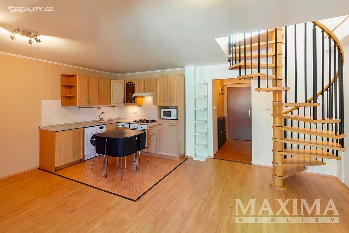 Nabízíme k prodeji mezonetový byt 2+kk o velikosti 53,5 m2 s vlastní terasou (cca 8 m2), situovaný v posledním patře velmi dobře udržovaného domu s výtahem. Byt je připravený k okamžitému nastěhování. Díky umístění v posledním patře nabízí byt velkou míru soukromí a krásný výhled z terasy. Dispozice: 7.NP (spodní podlaží bytu): obývací pokoj s kuchyňským koutem, chodba, koupelna s WC. 8.NP (horní podlaží bytu): ložnice se vstupem na terasu. Lokalita je ideální pro mladé aktivní lidi v docházkové vzdálenosti se nachází stanice metra, nákupní centrum Atrium Flora, množství kaváren, restaurací a sportovních zařízení. Díky svému umístění je byt vhodný jak pro vlastní bydlení, tak i jako investice s velmi dobrým potenciálem pro dlouhodobý nebo krátkodobý pronájem. PENB: F
