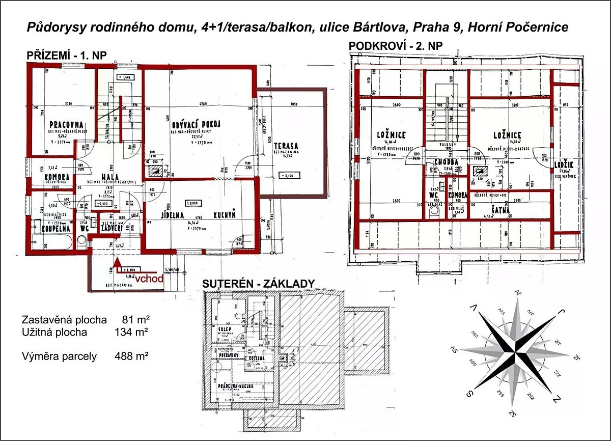 Nabízíme exkluzivně prodej rodinného domu z 80. let, montovaná stavba MONTI se sedlovou střechou, dispozice domu 4+1+suterén, užitná plocha domu činí 134 m2, s pozemkem o celkové výměře 488 m2, zastavěná plocha 81 m2. Nemovitost najdete v Bártlově ulici v Horních Počernicích, část Čertousy, přidanou hodnotou tohoto místa je malebný výhled na Podsychrovský rybník a Dvůr Čertousy. Dům je zateplený a z části podsklepený, kompletně napojený na inženýrské sítě (veřejný vodovod, kanalizace, plyn a elektro). Vytápění ústřední v obou podlažích, plynovým kondenzačním kotlem zn. Viesmann. Vše je ve funkčním a udržovaném stavu. V 1. nadzemním podlaží se nachází kuchyně s jídelnou, obývací pokoj, pracovna, koupelna, samostatné wc, komora, hala, zádveří a terasa. Ve 2. nadzemním podlaží najdete dvě ložnice, šatnu, komoru, další wc a lodžii. Technický suterén se třemi místnostmi slouží jako kotelna a sklepy. V dobré dochozí vzdálenosti od domu supermarket Lidl, mateřská škola, zastávka MHD, hotel Dvůr Čertousy, Edenia zahradní centrum. V Horních Počernicích je veškerá občanská vybavenost. Nedaleký Klánovický les je jedinečný pro dlouhé procházky a cyklo výlety. Nemovitost je možné financovat hypotečním úvěrem, který Vám rádi zajistíme za nejlepších podmínek na trhu. Velmi doporučuji prohlídku. Pro další informace mne neváhejte kdykoliv kontaktovat.