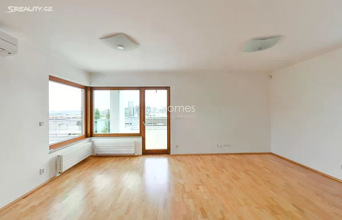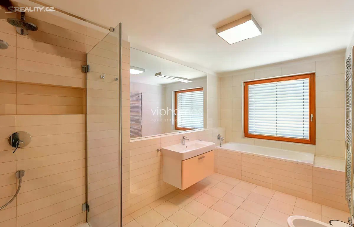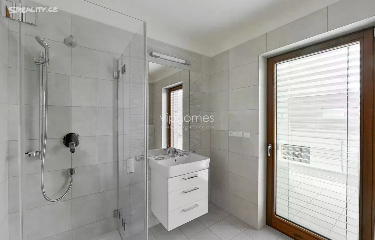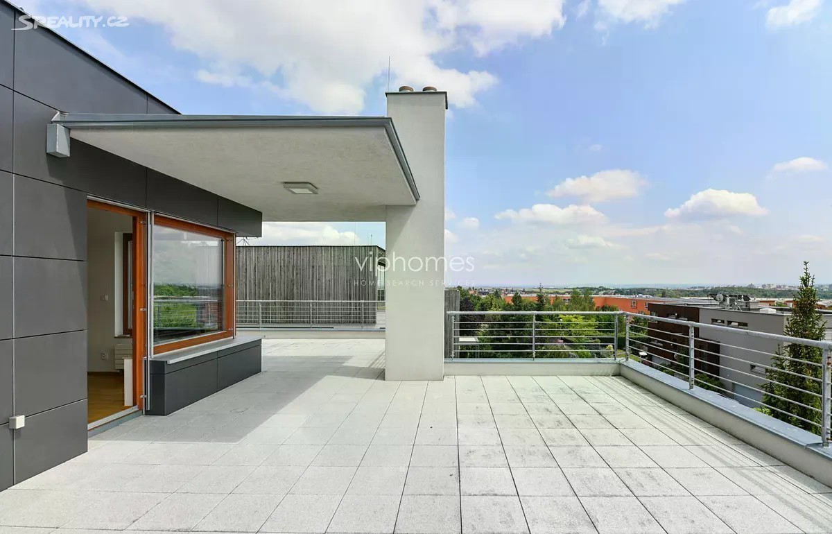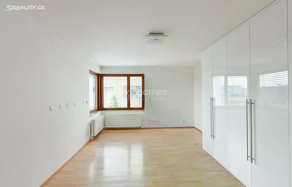 Příjemné bydlení, kousek od Německé školy, nedaleko Prokopského údolí; výborná dostupnost na letiště a do centra, v pěším dosahu stanice metra Nové Butovice. Moderní vila s 3 terasami, a nádherným panoramatickým výhledem na okolní zástavbu ze spoustou zeleně je součástí rezidenčního komplexu "Botanica" v Praze 5, Jinonicích, moderní rezidenční čtvrti, harmonicky propojené s lesoparkem Vidoule. Plně klimatizovaná vila vyniká kvalitním provedením a nabízí: 5 ložnic, 4 koupelny, 3 terasy. Přízemí: prostorný obývací pokoj s krbem a velkými francouzskými okny, jimiž se vstupuje na terasu a zahradu (567 m2), dále moderní, plně vybavena kuchyň, šatna, koupelna ze sprchovým koutem, a samostatná toaleta. Integrovaná garáž. V prvním patře je situována hlavní ložnice s vlastní koupelnou, šatnou a velkou terasou, další tři ložnice, společná plně vybavena koupelna. Další patro nabízí velkou ložnici s koupelnou a jihovýchodně orientovanou střešní terasou (79 m2). V suterénu (140 m2) naleznete 3 místnosti, (fitness, herna apod.), dále technickou místnost, prádelnu, dvě komory. Klimatizace, podlahové vytápění v koupelnách a na WC, alarm, TV a PC připojení v každém pokoji, elektrické žaluzie, centrální vysavač, satelitní připojení, alarm. Dekorativní zahrada s automatickým závlahovým systémem. Garáž pro dvě auta. Stanice metra trasy B je pohodlně dosažitelná pěšky, autem jste za několik minut u přípojky dálnice D5, odkud je to jen 15 minut jízdy na letiště. V blízkosti najdete supermarkety Albert, Tesco, nákupní centrum Galerie Butovice a Zličín. Kauce: 2 měsíční nájmy. Nájemné: 125.000 Kč + poplatky 17.600 Kč/měsíc. K dispozici: od ledna 2026. Prohlídky jsou možné od listopadu 2025.