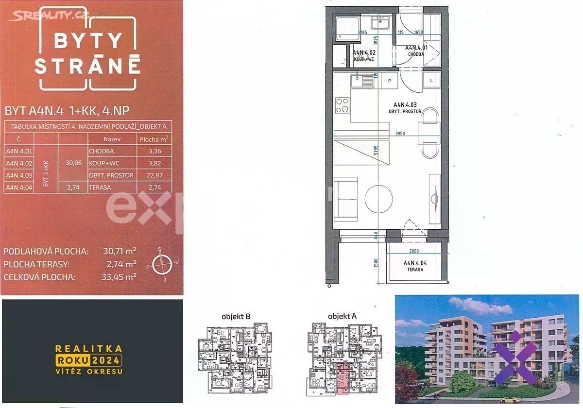 Mgr. Alice Nováková & Explicit Reality Vám exkluzivně nabízí k pronájmu zbrusu nový byt o dispozici 1+kk s terasou a výměře 33,45 m², který se nachází v právě dokončené rezidenci Byty Stráně na adrese Nad Stráněmi 7322, Zlín. Byt se nachází v moderním polyfunkčním domě s vysokým standardem provedení. Interiér nabízí komfortní bydlení v nadčasovém stylu. Kvalitní podlahy, bílé interiérové dveře s kováním, bezpečnostní vstupní dveře, plastová okna s izolačními trojskly. Vybavení bytu tvoří moderní kuchyňský kout, vybavený všemi spotřebiči (myčka, indukční varná deska, odsavač par, trouba, mikrovlnka). Moderní koupelna ja vybavena sprchovým koutem, keramickým obkladem a sanitou renomovaných značek. Hlavní výhody bytu: • novostavba s vysokým standardem • praktická dispozice 1+kk (33,45 m²) • moderní koupelna se sprchovým koutem • výborná lokalita se snadnou dostupností do centra • sklad o výměře cca 2 m² Lokalita: Rezidence Byty Stráně se nachází v atraktivní části Zlína, v těsné blízkosti cyklostezky a Fakulty aplikované informatiky UTB - ideální volba i pro studenty. Jen pár minut chůze od domu najdete obchodní centrum s potravinami Albert, lékárnou i restauracemi. Lokalita zároveň nabízí rychlou dopravní dostupnost do centra města, ať už MHD, pěšky nebo na kole. Náklady na bydlení: Nájemné: 12 500 Kč Energie: 3 500 Kč Kauce: 16 000 Kč Odměna RK ve výši kompletního nájemného Zaujala Vás tato nabídka? Ozvěte se a domluvíme se na prohlídku. Mgr. Alice Nováková, vaše spolehlivá partnerka pří výběru bydlení.