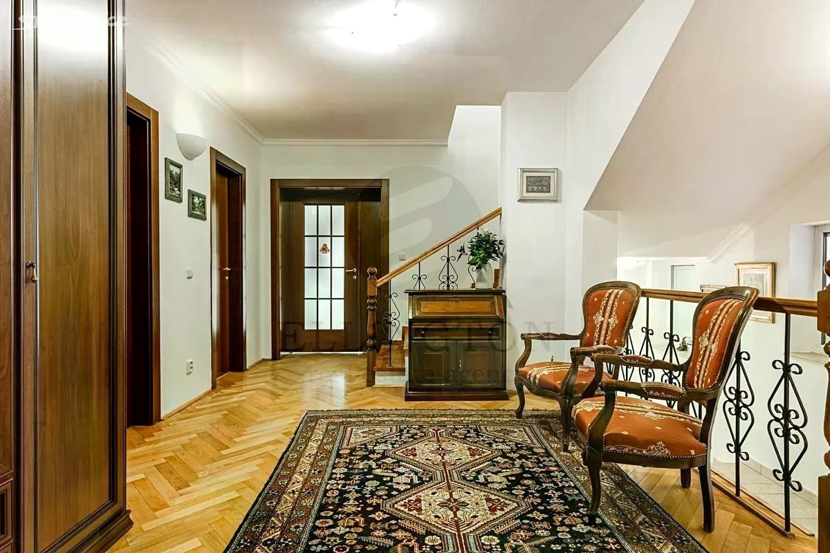 Dovolte mi, abych vás jménem realitní kanceláře Ellington, pozvala na prohlídku mimořádně prostorného a elegantního domu. Hledáte krásné prostory pro reprezentační sídlo firmy? Nebo hledáte velký a útulný dům pro Vaší velkou rodinu? Jste s námi na správné adrese. Nacházíme se ve velmi krásné a žádané lokalitě v Praze 4 Kunraticích v ul. Kalmánova, kde se nachází tento atypicky řešený rodinný dům o celkové rozloze 715m2. Při vstupu do domu vcházíme do prostorné chodby, z níž pokračujeme dále do dvougaráže, kuchyně, jídelny a krásného obývacího pokoje. Obývací pokoj není jen dominantou celého domu, jeho rozloha zaujímá celé přízemní patro. Je tak veliký, že si tady můžete i zatančit. Pokud byste tento dům chtěli využít jako sídlo firmy, představte si tady firemní setkání s rautem, hudbou a třeba i tancem. Když budeme pokračovat dále v prohlídce, dostáváme se na menší snídaňovou terasu a z ní můžeme sejít po schodech do krásné vzrostlé zahrady a na druhou terasu. Při firemním i rodinném využití, skýtají terasy a zahrada možnost pracovat i žít venku, v uklidňujícím prostředí. Pojďte se se mnou podívat do prvního patra. Zde najdete 3 x dětské pokoje, 1 x ložnici se šatnou a koupelnou s WC. Na chodbě nacházíme další koupelnu s WC a s prostornou šatnou. Opět připomínáme možnosti využití prostor třeba jako ordinace, jazykové učebny, prostory pro terapie,. stejně tak, jako komfortní bydlení pro více členů rodiny. Ve druhém patře je možné využívat 3 velké prostorné místnosti se šatnou, koupelnou a s WC. Opět, jako v přízemí, se zde nachází velký obývací pokoj, zde je vybavený menší kuchyňskou linkou. Dovolujeme si vás upozornit, že toto podlaží má samostatný vchod z bočního schodiště. To je velká výhoda soukromí. V případě, že byste tento dům využívali k práci, stejně jako k bydlení, můžete tímto uspořádáním, obě části života oddělit. Ze stejného schodiště se dostanete do bytové jednotky 1+1 o celkové rozloze 45m2 v 1patře. Vstupte se mnou do suterénu. V obývacích pokojích jsme uvažovali o tanci, zde můžete zpevnit tělo cvičením a ulevit stresu z práce. Nachází se zde menší fitness s pingpongovým stolem, velká šatna, sprchový kout a WC. Technické zařízení domu je také tady, a to kotelna, prádelna a sklad. Jak vidíte, i tady v suterénu, je vše čisté a světlé. Když spolu vyjdeme ven a rozhlédneme se, vidíte, že je na pozemku dostatek míst pro zaparkování většího množství aut. Přijďte na prohlídku a uvažte, jak krásně by se Vám zde žilo a podnikalo! Kunratice je krásná a klidná rezidenční čtvrť se smíšenou zástavbou klasických rodinných domů i moderních vil s veškerou občanskou vybaveností OC Kunratice včetně prestižních soukromých škol a školek, zdravotního střediska s lékárnou a pošty. Kunratický les nabízí velké možnosti pro sportovní nebo jen pro klidné rodinné vycházky. Díky napojení na Městský okruh a D1 je zde skvělá dopravní dostupnost Thomayerova nemocnice a IKEM cca 5 min autem. Stanice metra D Nemocnice Krč je již ve výstavbě. Nutno vidět. Vzhledem k lokalitě tuto nabídku doporučujeme.