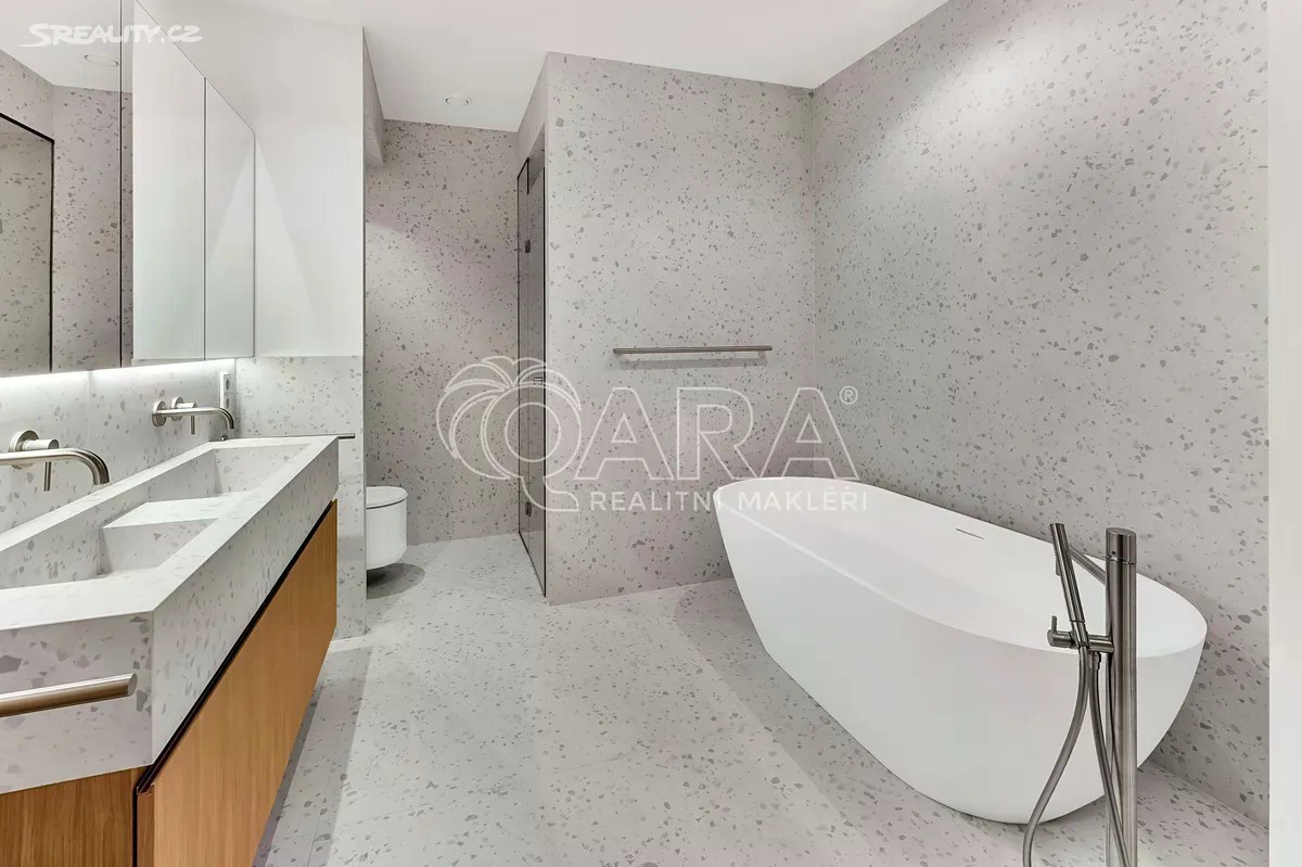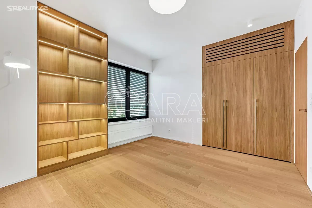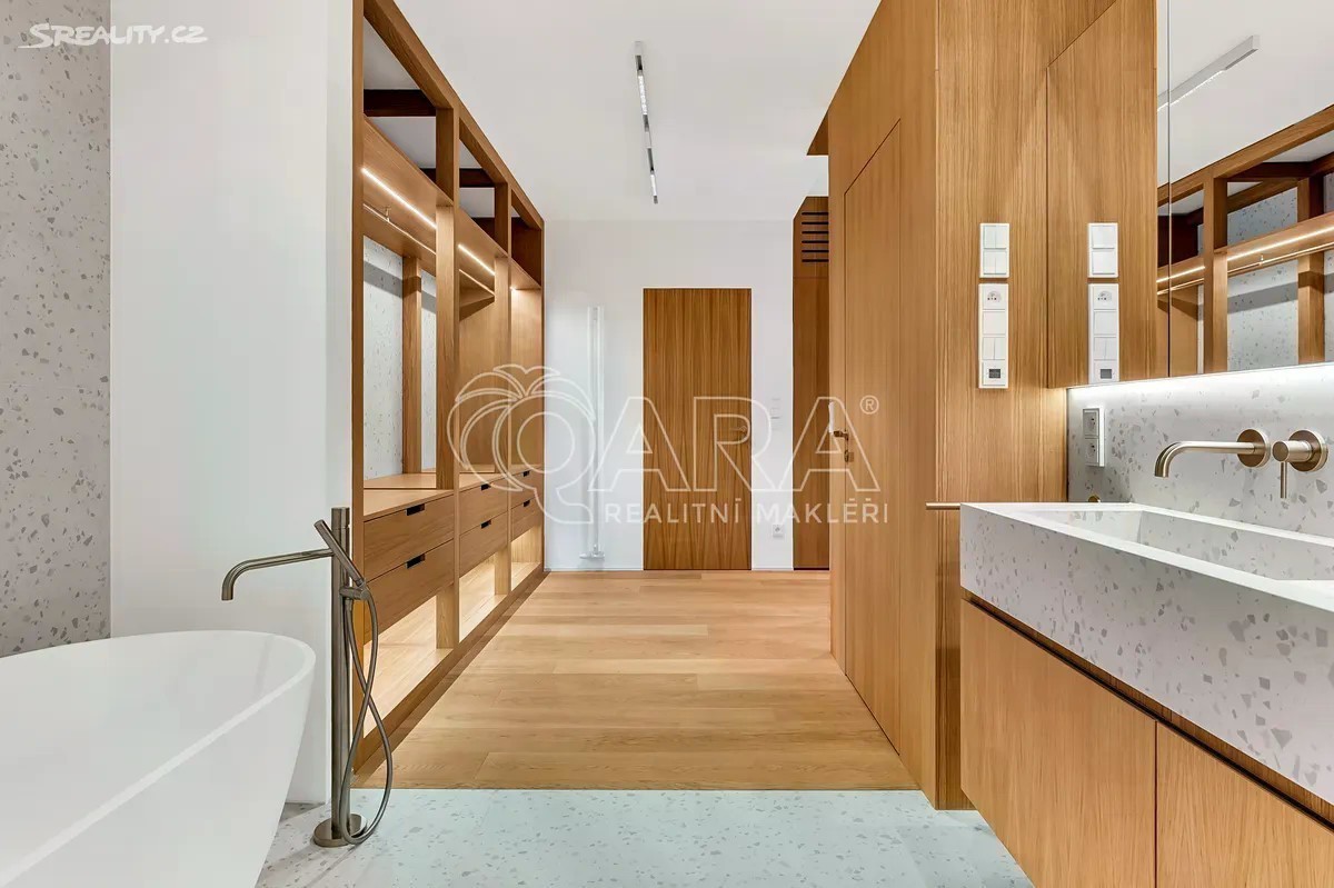 Představuji vám zcela novou, kompletně dokončenou novostavbu, kterou ještě nikdo neobýval. Žádné dodatečné náklady, žádné řešení či čekání - v této nabídce je vše hotové, takže se stačí nastěhovat a začít bydlet. Dům je rozdělen do dvou částí a disponuje celkovou užitnou plochou 289 m² včetně garáže pro 2 vozy (48 m²). Je postaven na pozemku o velikosti 632 m². Jeho původní dispozice 5+kk byla prakticky upravena na 4+kk, a to vybudováním prostorné šatny, což ocení především ženy. Hlavní část domu nabízí v přízemí velkorysý obývací pokoj propojený s jídelnou a kuchyňským koutem, odkud vstoupíte na terasu a do krásné zahrady. V přízemí je dále technická místnost a samostatné WC. V patře najdete dva dětské pokoje a hlavní ložnici s vlastní koupelnou a šatnou, o které se dá bez nadsázky hovořit jako takové samostatné jednotce v domě. Je vybavena nábytkem na míru z dubového dřeva, koupelna disponuje volně stojící vanou, sprchovým koutem, dvěma umyvadly a WC. Vše doplněno prvotřídními zařizovacími předměty. K dispozici je i druhá samostatná koupelna pro děti popř. hosty. Druhá část domu o velikosti 46 m² má samostatný vstup a mnoho možností využití - wellness, posilovna, kancelář či vlastní salon - to už bude zcela na vás. Dům je vybaven podlahovým topením v přízemí, v patře jsou radiátory. Součástí je i klimatizace ve všech pokojích, rekuperace vzduchu a elektrické předokenní žaluzie. Veškerý nábytek v domě je zhotovený na míru od architektonického a designového studia. Ostatní kusový nábytek, osvětlení a doplňky jsou sladěny s interiérem tak, aby působili jednotně, vzdušně a čistě. Podlahy jsou vysoce kvalitní dřevěné v kombinaci s luxusní dlažbou formátu 120 x 120. Špičková kuchyňská linka s prostorným ostrůvkem a deskou z umělého kamene je doplněna o vysoce kvalitní spotřebiče zn. Siemens. Krásná a prostorná zahrada byla navržena a realizována tak, aby její údržba byla minimální. Její součástí je plně automatická závlaha i venkovní osvětlení, které po setmění promění celý prostor v oázu absolutního klidu a soukromí. Toto místo si jistě zamilujete. Nechybí zde ani příprava pro bazén. Výjimečné je i umístění domu. Máte zde naprosté soukromí v klidné lokalitě, přitom jste pár minut od metra Dejvická nebo Šáreckého údolí. Hned u domu je obchod s potravinami, školka i zastávka autobusu s přímým spojením na metro Dejvická. Navíc můžete využít bonus v podobě převzetí hypotečního úvěru se zůstatkem cca 23 mil. Kč se sazbou 2,29 % od Hypoteční banky, která je garantovaná až do října 2028. Pokud vás tato nabídka zaujala, neváhejte mi zavolat a domluvíme si osobní prohlídku.