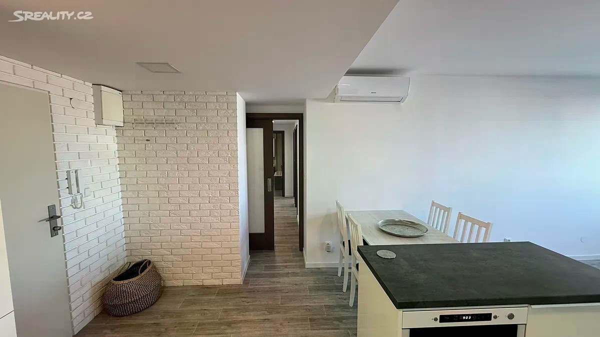 Nabídka prodeje moderního zrekonstruovaného bytu 3+kk, o podlahové ploše 79 m2, s balkónem ( 5 m2), klimatizací a sklepem ( 2m2), v samotném centru Zlína, na ulici Osvoboditelů, v jedné z dominant města s Baťovským "geniem loci", v Kolektivním domě. V tomto nadčasovém bytovém domě, jež je součástí seznamu kulturních památek ČR, se majitelé pod dohledem Odboru kultury a památkové péče města Zlína, rozhodli pro citlivou leč celkovou rekonstrukci a modernizaci tohoto bytu, kdy se jim záměr mimořádně povedl. Majitelé s mimořádným citem pro detail, využítím stávajícího prostoru, použitím moderních materiálů a rozmístěním jednotlivých užitných zón bytu, vytvořili velmi příjemný, útulný celek, s dostatkem úložných ploch a současně potřebným soukromím pro jednotlivé členy domácnosti. Byt je situován v 5.NP a jeho dominantou je již na první pohled dostatek světla a prostor. Vlastní rekonstrukce byly velmi důkladná a nic nebylo ponecháno náhodě. Od kompletní rekonstrukce elektrických rozvodů s třífázovým 20 A jističem, přes nové rozvody vody, odpadů, položení nových PVC podlahovin do jednotlivých pokojů, keramických obkladů a dlažby do nové zvětšené moderní koupelny, posunutí a odstranění původních příček v bytě, osazení moderní kuchyně s ostrůvkem a všemi potřebnými elektrospotřebiči, nových dřevěných dveří a zárubní, sádrokartonových podhledů pro osazení LED osvětelní, klimatizaci, osazení nových vstupních dveří až po instalaci na míru zhotovených šatních skříní na spojovací chodbě a v jednotlivých pokojích, v neposlední řadě. Barevné sladění celku a výběr jednotlivých materiálů na podlahoviny, do krásné kuchyně, koupelny, šatní skříně, zárubně, dveře a pečlivé uvažování o jednotlivých prvcích osvětlení, to a nejen to vytvořilo celkově mimořádně útulný prostor, kde se majitelé cítí pohodlně, v bezpečí, doma. Dominantní místností je bezesporu velká kuchyně s klimatizovaným obývacím pokojem, kdy kromě pečlivě vybraných úložných prostor, s důrazem na celkovu čistotu designu kuchyně, najdeme samozřejmě veškeré moderní elektrospotřebiče, od indukční varné desky Whirpool, digestoře Whirpool, vestavěné lednice s mrazákem Bosch, myčky nádobí Bosch, horkovzdušné trouby Mora, mikrovlné trouby Whirpool až po granitový dřez Franke. V duchu čistoty linií jsou elektrické zásuvky v kuchyni zapuštěny do pracovních desek. Vše doplňuje příjemně laděné osvětlení. Kuchyně s obývacím pokojem je od klidových zón bytu a spojovací chodby, oddělena posuvnými dveřmi v pouzdru. Ložnice manželů ( 15 m2), s vestavěnými skříněmi, má pak přístup na balkón s klimatizační jednotkou. Odtud je velmi hezký výhled nejen na centrum města, ale zejména směrem k atletickému stadiónu, na zimní lázně a do lesů nad lyžařským svahem. Dětský pokoj ( 16m2), s rohovým prosklením, pak jen doplňuje celkový dojem z tohoto bytu, vzdušnost, všudy přítomné světlo a prostor. Každý člen rodiny má tak svůj vlastní prostor a místo, aby nebyl rušen ostatními. V suterénu bytového domu je pak sklepní kóje ( 2m2), náležející k bytu. Bytový dům je pro jednotlivé vlastníky bytů přístupný dvěmi vchody, od Štefánikovy ulice a ulice Osvoboditelů. V domě je instalován kamerový systém a k dispozici je i několik výtahů. Díky své poloze v samotném centru města, je k dispozici veškerá infrastuktura a občanská vybavenost, úřady, školy, školky, kina, divadla, restaurace, sportovní zařízení, supermarkety, veškeré služby, městské lázně, zimní stadión, sportoviště a v neposlední řadě i rychlý přístup do přírody a lesů obklopujících krásné zelené město Zlín.