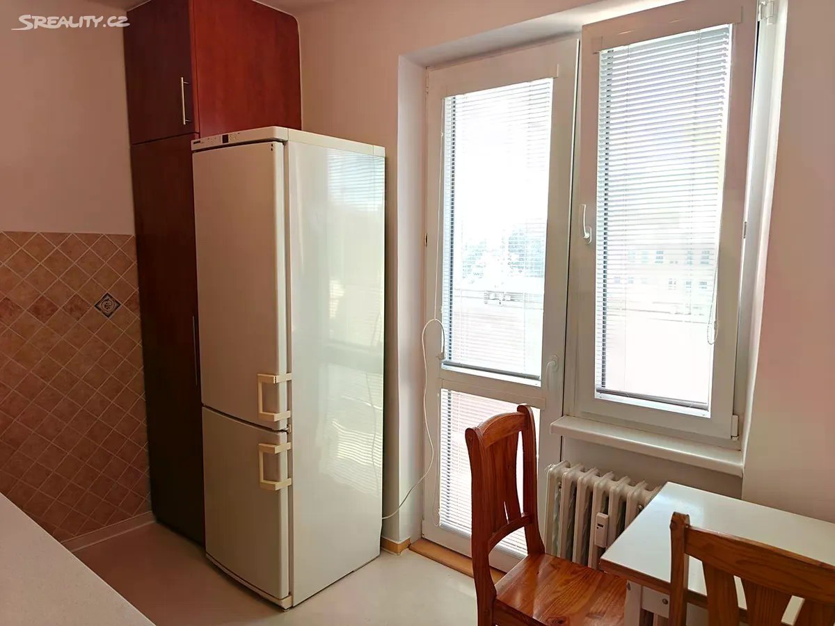 Byt se nachází naproti polikliniky u vozovny v domě po celkové revitalizaci fasáda, zateplení, plastová okna, nový vchod. Jedná se o byt ve výborném udržovaném stavu. Výhodou je zvětšená zasklená lodžie se vstupem z kuchyně. Kuchyň včetně kuchyňské linky, jídelního stolu, židlí, lednice a pračky. Zděná koupelna s vanou, toaleta zvlášť. Obývací pokoj o vel. 3,5 x 5 m. Elektřina v mědi. Byt je určen pro nekuřáky a bez zvířátek. Veškerá občanská vybavenost v místě služby, MHD, obchody, krytý bazén aj. Ihned volný. Plocha bytu včetně lodžie 42m2. Nájem 7.900 Kč, záloha na služby 1.860 Kč, záloha na elektřinu, plyn a internet (PODA) 1.210 Kč. Zálohy na služby jsou uvedeny pro 1 osobu. Je vyžadována vratná kauce 15.000 Kč. Provize RK 12.000 Kč.