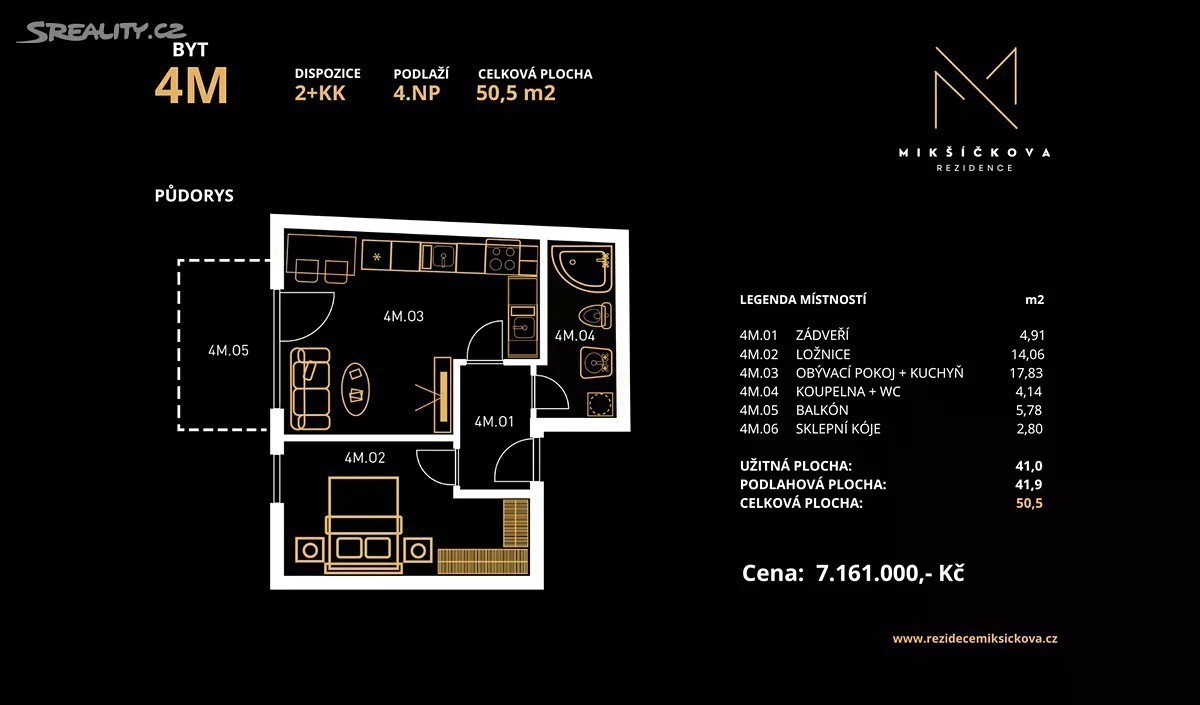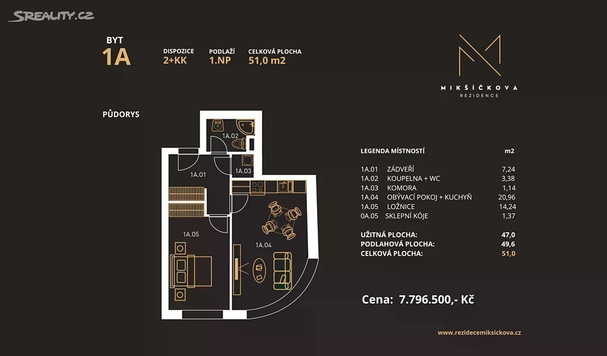 Vítejte v Rezidenci Mikšíčkova, kde nabízíme k prodeji exkluzivní byt o dispozici 2+kk, který je situovaný v jedné z nejatraktivnějších lokalit v Brně a to konkrétně v Mikšíčkově ulici v městské části Židenice. Tento moderní byt o celkové ploše 50,0 m² se nachází ve 3. nadzemním podlaží čtyřpodlažního bytového domu, který představuje ideální kombinaci komfortu a elegance. Tato novostavba byla pečlivě navržena s ohledem na vysoké požadavky moderního bydlení. Byt je vybavený současnými prvky, které zajišťují maximální pohodlí a funkčnost. S užitnou plochou 41,0 m² nabízí ideální prostor pro relaxaci a každodenní život, při zachování stylového a útulného prostředí. Tuto skutečnost podtrhuje dále také fakt, že v rámci bytového domu se nachází pouze 13 jednotek. Nemovitost je prodávána již včetně veškerého vybavení jako je kuchyňská linka s vestavěnými spotřebiči a také nábytek přímo na míru daným dispozicím, jehož design představuje dokonalou kombinaci ergonomie a originality. Vše je navrženo a zpracováno studiem kuchyně a nábytek ARVAY, které se vyznačuje jedinečným designem a perfektním zpracováním do posledního detailu. Hlavní předností této nemovitosti je její jedinečné umístění. Židenice se pyšní klidnou atmosférou, avšak zároveň je zde výborná dostupnost do centra města a dalších okolních lokalit. V okolí naleznete všechny potřebné služby, jako jsou obchody, restaurace a kulturní vyžití, což činí tuto lokalitu mimořádně atraktivní pro náročné klienty. Interiér bytu je důmyslně řešen tak, aby bylo maximizováno využití prostoru. Moderní design a kvalitní materiály podtrhují luxusní charakter této nemovitosti. Větraný a prosvětlený prostor je ideální pro pohodu a relaxaci, zatímco velká okna zajišťují dostatek denního světla. Celkový dojem z bytu je umocněn výbornou dopravní dostupností a širokým spektrem možností pro aktivní trávení volného času. Tento byt je nejen skvělou investicí, ale také místem, kde se spojí komfort, styl a výhody městského života. K nemovitosti je navíc možnost zakoupení garážové stání, jenž se nachází v 1. PP bytového domu. Předpokládaný termín nastěhování je: IQ/2027 Pokud Vás naše nabídka zaujala, neváhejte nás kontaktovat pro bližší informace nebo se můžeme rovnou domluvit na osobním setkání.