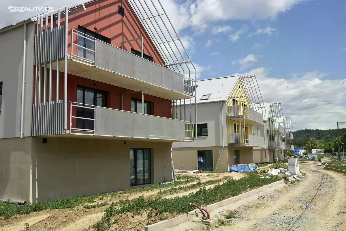 Nabízíme k prodeji byt 3+kk v novostavbě, která je součástí nového bytového komplexu na okraji města Dobřichovice. Tento byt se nachází v podkroví bytového domu „T“. Díky své pozici v nejvyšším podlaží ze svého balkonu nabízí krásné výhledy do okolí. Součástí příslušenství k výhradnímu užívání bytu je již zmíněný balkon (cca 23 m²), zděný sklep umístěný ve vstupním podlaží domu o velikosti cca 2 m² a dále jedno parkovací stání umístěné na terénu před domem. V základním standardu jednotky jsou veškeré podlahy, obklady a koupelnová sanita. Byt je připojený na teplovodní centrální plynovou kotelnu umístěnou v přízemí objektu, v pokojích jsou osazena desková otopná tělesa, v koupelně topný žebřík (doplněný el. patronou pro možnost dohřevu mimo topnou sezonu), v koupelně je také elektrické podlahové vytápění (opět pro možnost přitápění nezávisle na topné sezoně). Ohřev teplé vody bude kromě plynu v letních měsících navíc zajišťován pomocí FV panelů umístěných na střeše objektu. V bytě je také instalována větrací jednotka s rekuperací tepla. Okna jsou plastová trojskla. V bytě bude provedena příprava pro osazení klimatizace (připravené elektroinstalace a rozvedené potrubí chladiva). Díky použitým moderním technologiím získala budova energetické hodnocení B - velmi úsporná. Prohlídky na stavbě zatím z bezpečnostních důvodů bohužel nenabízíme, vše důležité spolu ale můžeme probrat u nás v kanceláři. Pokud Vás byt zaujal, neváhejte nám napsat nebo zavolat, rádi se s Vámi setkáme osobně.