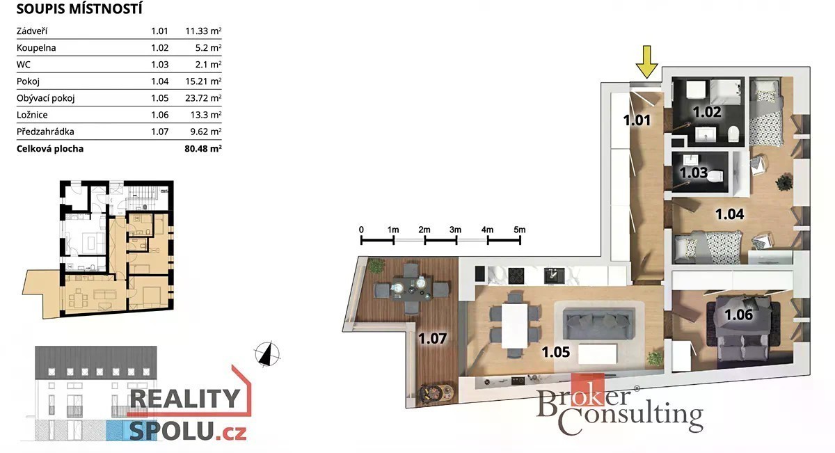 Nabízíme k prodeji moderní byt o dispozici 3+kk s užitnou plochou 71 m² a vlastní předzahrádkou o velikosti 10 m². Celkem tak získáváte 81 m² prostoru k užívání, který poskytne dostatek místa pro komfortní bydlení i příjemné chvíle venku. Byt je umístěn v přízemí domu označeného jako Solitér, jenž je součástí menšího komplexu tří budov a nabízí více klidu a soukromí. Projekt se blíží dokončení, kolaudace je plánována na přelom listopadu a prosince 2025. Rezidence Pod Malechovem je ideálním místem pro jednotlivce, páry i rodiny s dětmi. Lokalita nabízí klid, soukromí a dostatek zeleně, přitom však veškeré služby pro pohodlný život máte na dosah. Bytové domy vyrůstají v Českém Brodě, nedaleko náměstí Arnošta z Pardubic. Díky železničnímu spojení se do Prahy dostanete za pouhých 30 minut - rychle, pohodlně a bez stresu z dopravních zácp. Rezidence Pod Malechovem tak spojuje výhody moderního bydlení s atmosférou menšího města a skvělou dostupností do metropole.