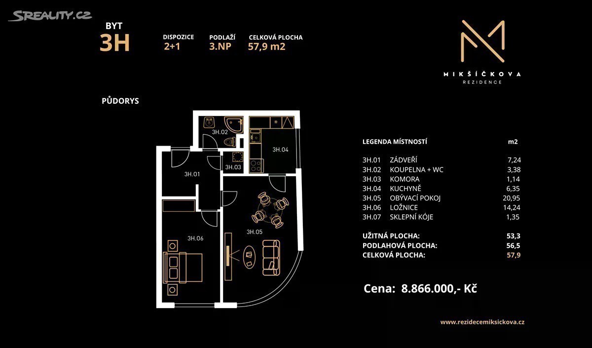 Vítejte v Rezidenci Mikšíčkova, kde nabízíme k prodeji exkluzivní byt o dispozici 2+kk, který je situovaný v jedné z nejatraktivnějších lokalit v Brně a to konkrétně v Mikšíčkově ulici v městské části Židenice. Tento moderní byt o celkové ploše 58,6 m² se nachází ve 3. nadzemním podlaží čtyřpodlažního bytového domu, který představuje ideální kombinaci komfortu a elegance. Tato novostavba byla pečlivě navržena s ohledem na vysoké požadavky moderního bydlení. Byt je vybavený současnými prvky, které zajišťují maximální pohodlí a funkčnost. S užitnou plochou 57,3 m² nabízí ideální prostor pro relaxaci a každodenní život, při zachování stylového a útulného prostředí. Tuto skutečnost podtrhuje dále také fakt, že v rámci bytového domu se nachází pouze 13 jednotek. Nemovitost je prodávána již včetně veškerého vybavení jako je kuchyňská linka s vestavěnými spotřebiči a také nábytek přímo na míru daným dispozicím, jehož design představuje dokonalou kombinaci ergonomie a originality. Vše je navrženo a zpracováno studiem kuchyně a nábytek ARVAY, které se vyznačuje jedinečným designem a perfektním zpracováním do posledního detailu. Hlavní předností této nemovitosti je její jedinečné umístění. Židenice se pyšní klidnou atmosférou, avšak zároveň je zde výborná dostupnost do centra města a dalších okolních lokalit. V okolí naleznete všechny potřebné služby, jako jsou obchody, restaurace a kulturní vyžití, což činí tuto lokalitu mimořádně atraktivní pro náročné klienty. Interiér bytu je důmyslně řešen tak, aby bylo maximizováno využití prostoru. Moderní design a kvalitní materiály podtrhují luxusní charakter této nemovitosti. Větraný a prosvětlený prostor je ideální pro pohodu a relaxaci, zatímco velká okna zajišťují dostatek denního světla. Celkový dojem z bytu je umocněn výbornou dopravní dostupností a širokým spektrem možností pro aktivní trávení volného času. Tento byt je nejen skvělou investicí, ale také místem, kde se spojí komfort, styl a výhody městského života. K nemovitosti je navíc možnost zakoupení garážové stání, jenž se nachází v 1. PP bytového domu. Předpokládaný termín nastěhování je: IQ/2027 Pokud Vás naše nabídka zaujala, neváhejte nás kontaktovat pro bližší informace nebo se můžeme rovnou domluvit na osobním setkání.