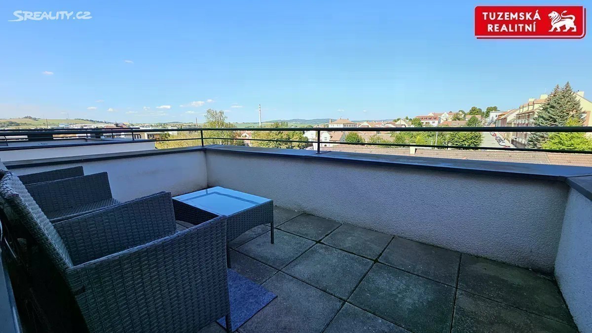 Pronájem pěkného bytu 2+kk s velkou terasou v novostavbě bytového domu v Boskovicích na Růžovém náměstí. Byt je výjimečný například tím, že v přízemí je kavárna. V ní si můžete, jste-ĺi obchodník či manažer, domlouvat u kávy schůzky s klienty a po skončení výtahem komfortně a rychle vyjedete domů nahoru do třetího patra. Další výjimečností je, že v přízemí je navíc lékárna a celé první patro mají lékaři. A třešničkou na dortu je krásná zeleň s lavičkami mezi květinami před domem, nádherný relax plný barev a vůní. Terasa přístupná z obýváku je velká 8,62m2 a je z ní hezký výhled na Boskovice a okolní zelenou krajinu. Posezení na terase Vás vyloženě zve, abyste si zde na čerstvém vzduchu dali něco dobrého, nebo alespoň vychutnali ranní kávu. Byt je vybaven elektrickým podlahovým vytápěním s možností regulace každé místnosti zvlášť pomocí termostatů. Okna jsou s izolačními trojskly, zaručují klid a ticho. Bytový videotelefon je vybaven záznamem a Vy můžete v případě Vaší nepřítomnosti zjistit, kdo na Vás zvonil až týden dozadu. Byt má skvělou polohu ve městě, všude je to kousek. Hned vedle je květinářství, optik, fitness centrum, naproti je kadeřnictví, další lékaři, optika a další. Kousek je i zastávka autobusu, náměstí, školky, základní i střední školy atd. Byt vznikl novou nástavbou dvou pater v roce 2021, je plně vybaven nábytkem, spotřebiči i dekoracemi a to přesně tak, jak je vidět na videu a fotografiích. Parkovací místo za bytovým domem či sklep je možné užívat po dohodě. Energie jsou napsány na majitele bytu. Je zde možnost trvalého pobytu. Plocha bytu je 47,36 m2 plus terasa 8,62m2. Dispozice: Předsíň 7,49m2, obývací pokoj s kuchyňským koutem 23,79m2, ložnice 12,85, koupelna s WC 3,23m2, terasa 8,62m2 se vstupem z obývacího pokoje. Nájem je 19.000 Kč měsíčně plus inkaso 4.000 Kč měsíčně. Úklid společných prostor je v ceně, stejně jako vysokorychlostní internet přes O2 a balíček 60 televizních programů. Vratná kauce je 5.000 Kč. Nájem se platí předem na následující měsíc. Provize RK je 19.000 Kč. Byt je možné užívat cca od 21.10.2025.