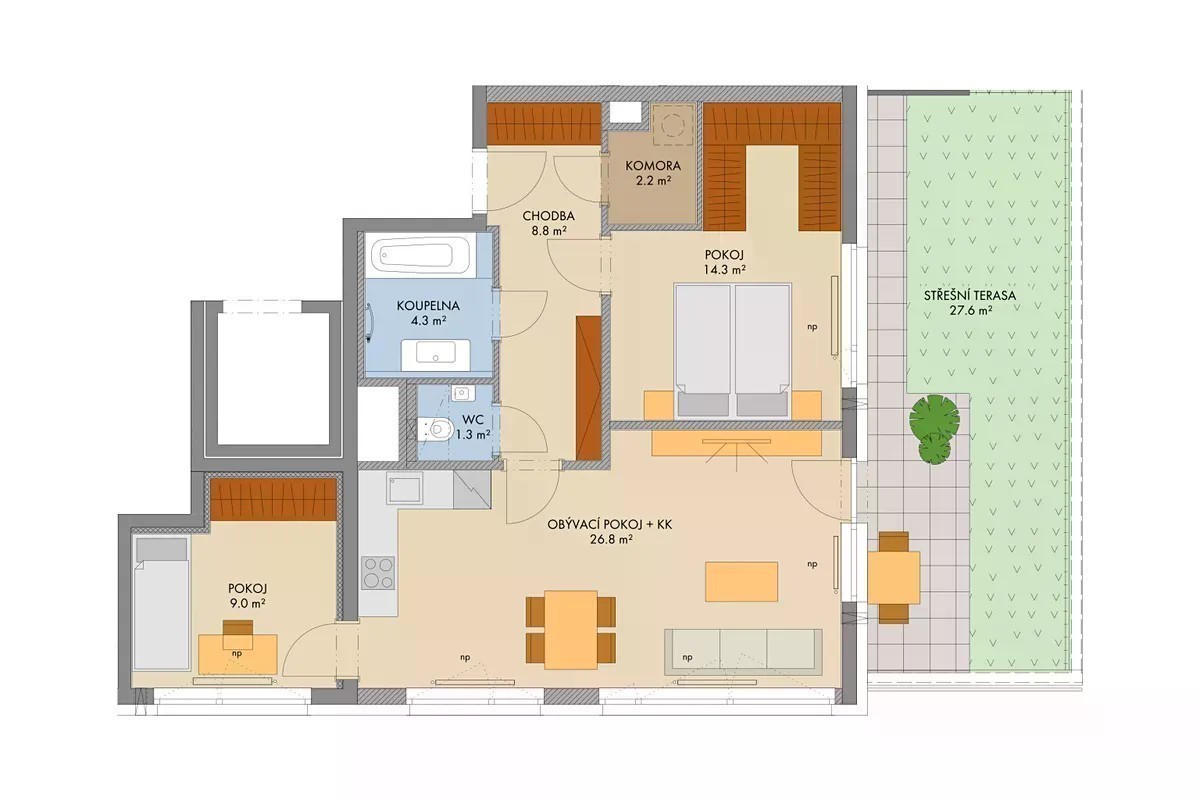 Prodej bytu 3+kk 74 m² Gollové, Praha
