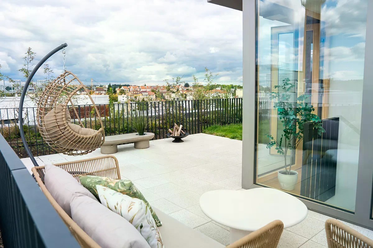 Nabízíme moderní a prostorný byt 4+kk o velikosti 116 m² se soukromou střešní terasou, který spojuje komfort, soukromí a špičkový standard provedení. Dominantou bytu je velkorysý obývací pokoj s přípravou pro kuchyňskou linku, dostatkem místa pro velký jídelní stůl i pohodlnou sedací soupravu. Z obývací části je vstup na rohovou lodžii, odkud vnitřní schodiště vede na privátní střešní terasu - ideální prostor pro vířivku, venkovní kuchyň nebo posezení s přáteli při výhledu, který vás nikdy neomrzí. Byt nabízí dvě ložnice, obě s přímým vstupem do prostorné šatny. K dispozici jsou dvě koupelny - jedna s vanou, umyvadlem a toaletou, druhá se sprchovým koutem a umyvadlem - a dále samostatné WC v předsíni. Celý interiér je řešen tak, aby působil vzdušně, klidně a funkčně, s dostatkem úložných prostor včetně šatny, chodby a zádveří. Byt je součástí projektu s důrazem na vysoký standard provedení: - rekuperace - plovoucí třívrstvé dřevěné podlahy - velkoformátová dlažba - dřevohliníková okna s trojsklem - bezpečnostní dveře NEXT - bezfalcové interiérové dveře o výšce 210 cm Tento byt je ideální volbou pro ty, kteří hledají moderní, nadstandardní bydlení s dostatkem prostoru, luxusními detaily a naprostým soukromím. K bytu je možné dokoupit sklep a parkovací stání. Více informací naleznete na webových stránkách projektu.